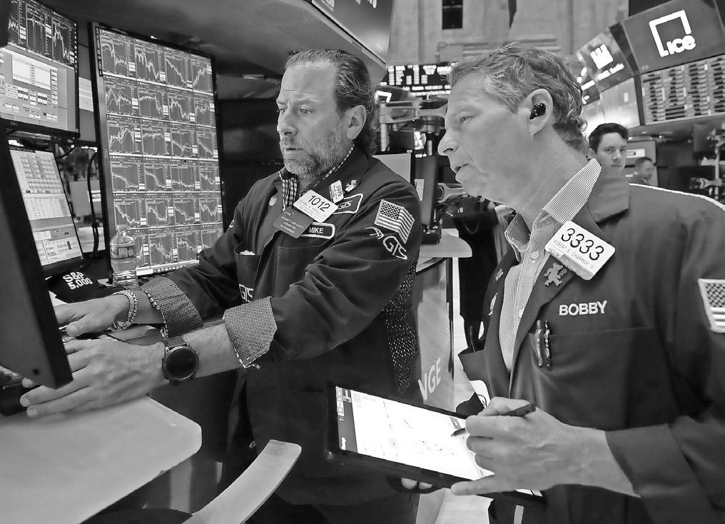 SPECIALIST MICHAEL PISTILLO, left, and trader Robert Charmak work on the floor of the New York Stock Exchange, May 30, 2024. World shares began June mostly higher after a report showing that inflation in the U.S. is not worsening drove a rally on Wall Street.