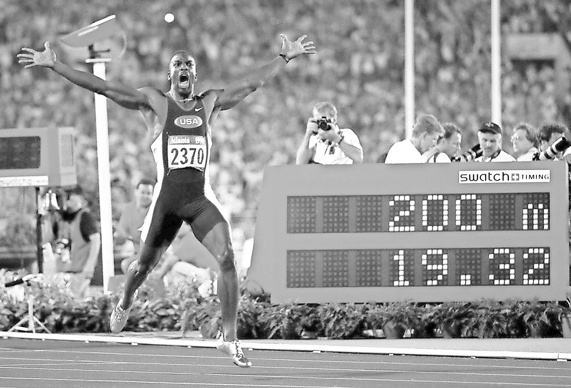 Johnson, who wore his famous golden spikes at the 1996 Atlanta Olympics while setting the
