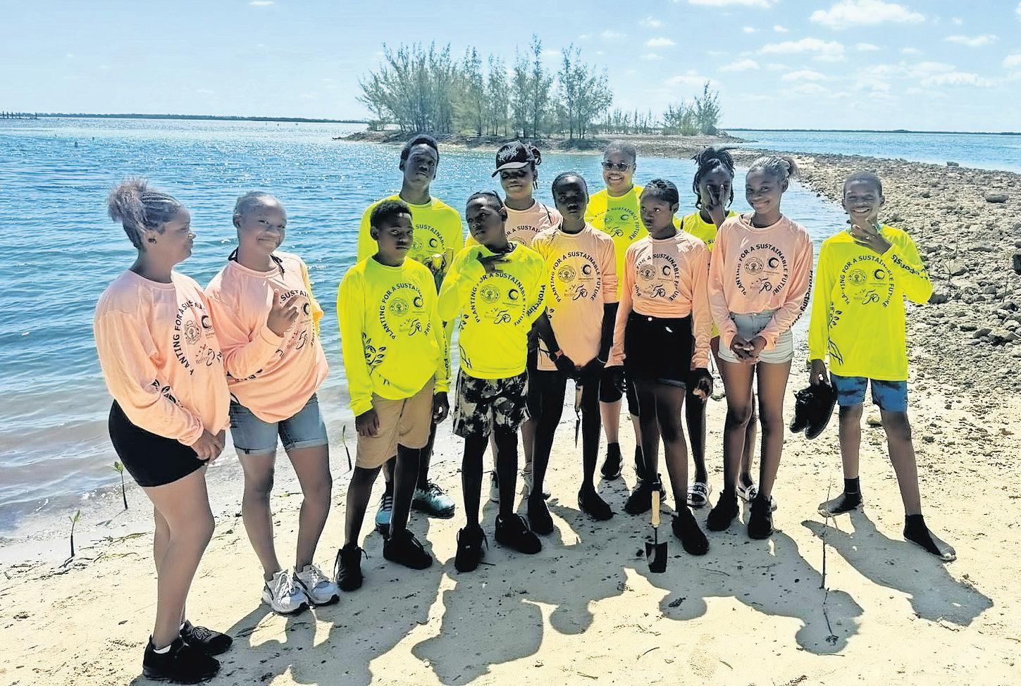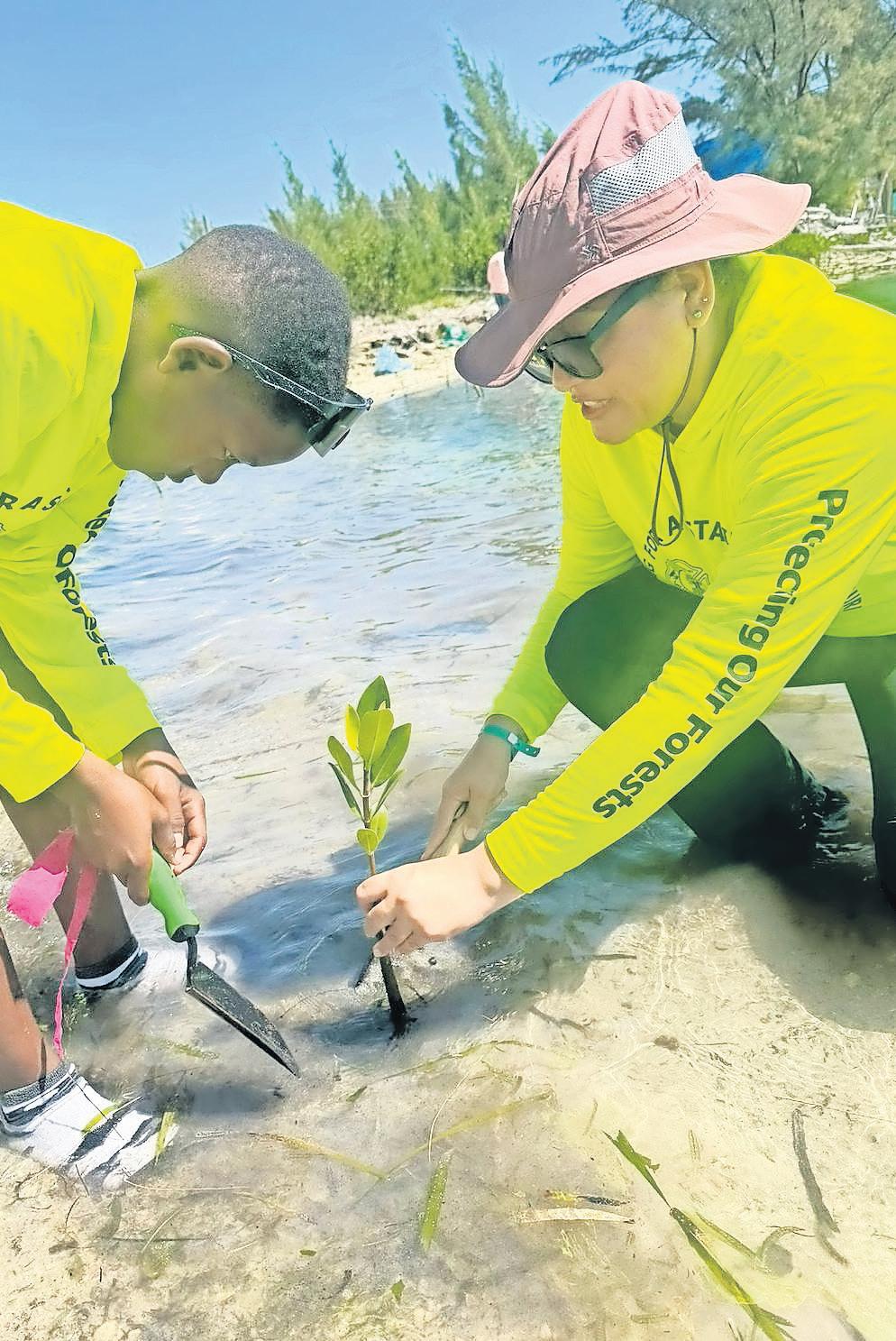 TWELVE students from Louise McDonald High School in Alice Town, Bimini, their teachers, and school administrators recently planted dozens of red mangroves they nurtured over the past six months.