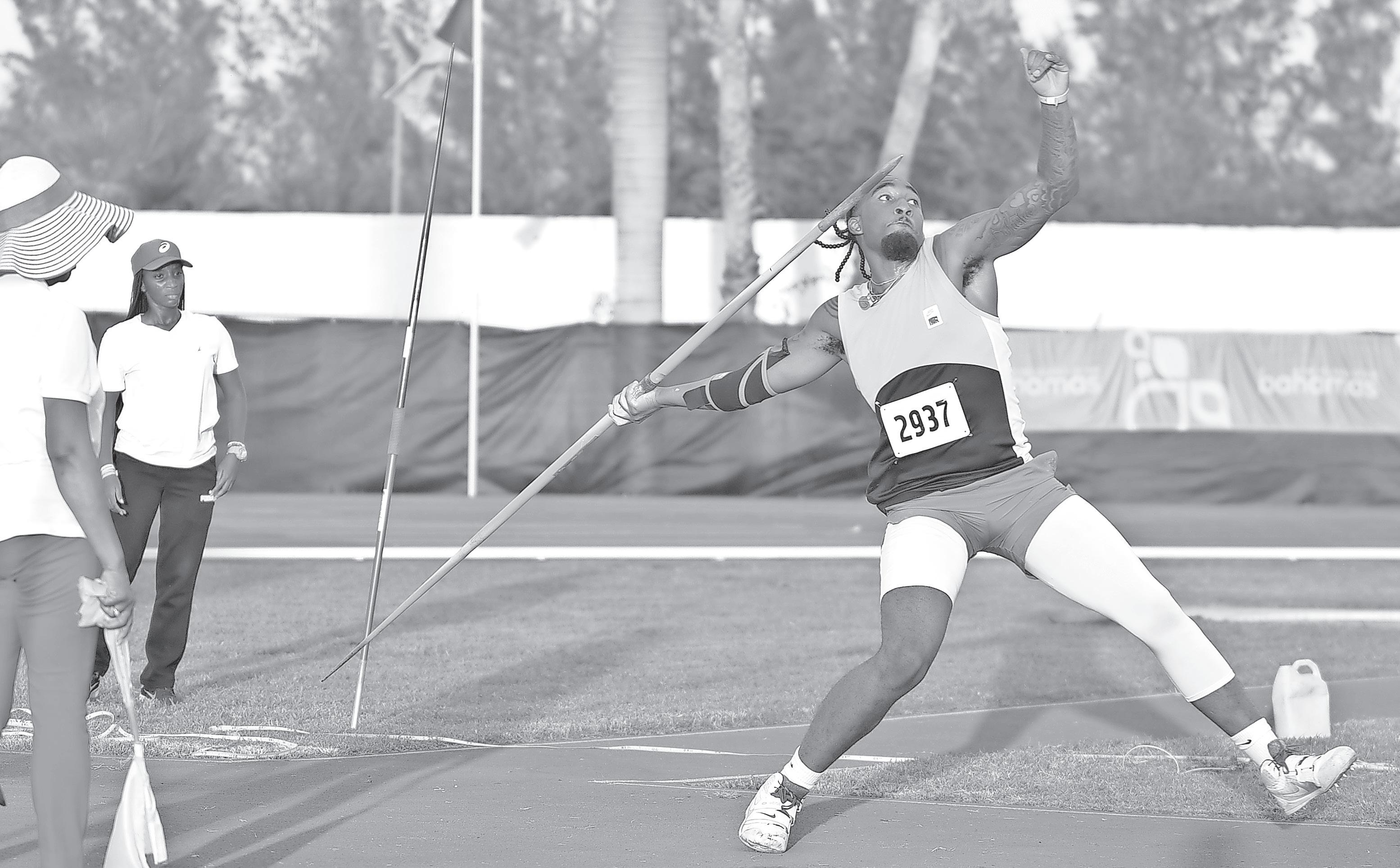 comfortably in the under20 boys javelin throw. He heaved the javelin to 59.56m. Kendal Cooper was second overall with his throw of 44.06m. University of Miami student