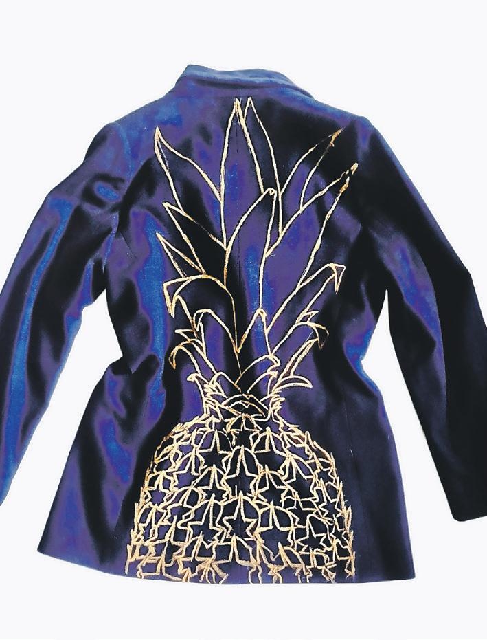 She said each look that she created after The Flamingo Gardens boot became her artistic interpretation of a unique piece of Bahamian iden tity. Another piece, The Golden Pineapple, she said, is completed as a navy-blue blazer featuring the “lutra pine”.