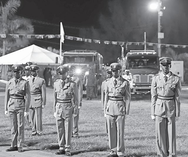 The evening climaxed with the arrival of police, defence force and corrections officers on the field to march in formation as the flag was raised at midnight.