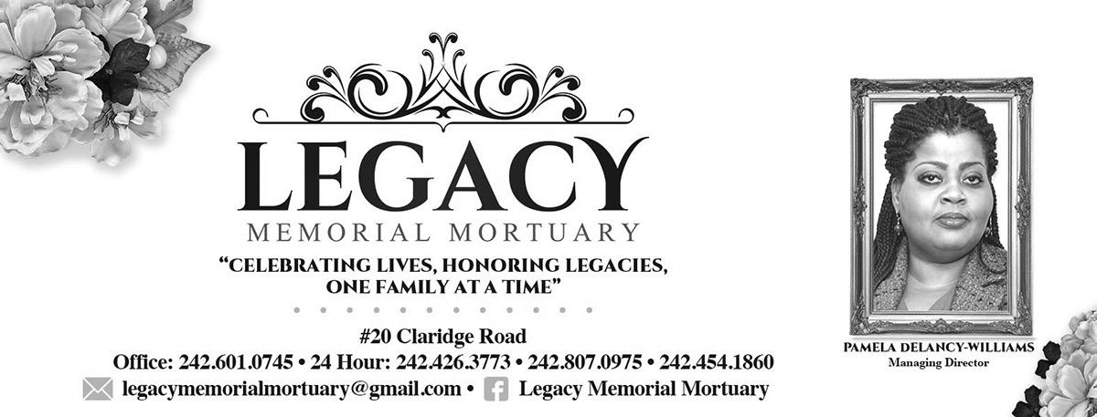 Left to cherish his memories are his children: Tamika Wallace, Lionel Devon Glinton, Raynardo Hanna, Dekera Joseph, and Leading Seaman Damian Glinton; daughters-in-law: Sabra Hanna and Jade Glinton; grandchildren: Tanae Wallace, Anthonya Bethel, Selena and Deija Glinton, Saraya and Raynardo Ethan Hanna, Dakarai Joseph, Darian Glinton, Jatina, Darai and D’Amari Glinton; siblings: Erwin Johnson, Loretta Lewis and Icelyn Rolle; brotherin-law: Anthony Rolle; sister-in-law: Ikenna Johnson; step children: Miguel, Monica and Melissa Clare, Thorn Demeritte, Fabiola Stvil-Lindor, Garnelle Stvil and Princess Glinton; numerous nieces and nephews: Deborah (Darryl) Brinson, Bernadette (Reginald) Montgomery, Margarita (Richard) Beckford, Theresa (Leroy) Minnis, Edwin, Sharon, and Nicholas Johnson, Erwin (Toni) Johnson, Derron (Debra) Lewis, Andrew (Sonia) Lewis, Antoinette (Ronald) Deveaux, Monique and Donavon Lewis, Tiffany (Raymond) Rolle, Tamika and Craig Lewis, Vanteria (Lawrence) Cuff, Lorenzo Lewis, Anthonique (Kenneth) Ferguson, Roselyn (Kenaz) Bonimy, Ashley Rolle, Fred and Patrick Glinton, Sandra (Zendel) Stubbs, Barbara (Jeffrey) McDougal, Leticia (Lorenzo) Burrows, DeAngelo Minus, Chiszelle (Brian) Collins, Tureano (Natania) Johnson, Branden, Erkell, Bianca, Kayla and Erwinette Johnson, Joey Pue, Sherry Glinton-Baptist and Frederica Glinton, Terry Pugh, Jason, Shane and Julian Glinton, Rosemary Pratt, Wendy Finlayson, Shelly Bain, Anna and Dellareese Glinton; other relatives and friends: Dr. Sharon (Whitfield) Moss, Donna Hanna, Deborah Clare-Glinton, Guirlene Mode-Glinton, Ronald Joseph, Kermika Woodside, Verley Curtis, Quincy Fisher, Candice Williams, Katrice Sweeting, Ellen Adderley, Sheila Peters, Joe Canta, Vincent Strachan, Jonathan Kemp, Julian Cox, Tolica Simms, Katera Davis, Arios Metellus, Mario Sherman, Renford Munroe, Roderick and Raymond Mackey, Alvin Sargent, Whitney Bastian, Pastor Randy Nottage, Pastor Mark Knowles, Clement T. Maynard III, Hon. Alfred Sears and family, George Hutchinson and family, Luther Smith and family, The Rt. Hon. Philip ‘Brave’ Davis, The Long Island