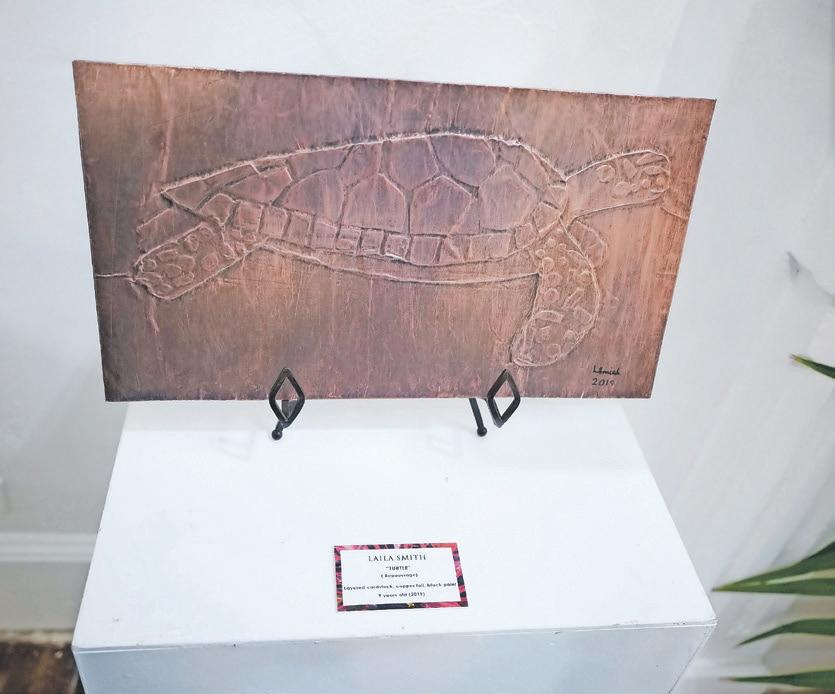 “Nature scenes are my favorite to paint, because the nature is pretty and i like to recreate it on canvas,” said Abilail Morre when asked what her favourite scenes are to paint and why. She also created a beautiful piece inspired by Yutavia George. The work consist of watercolours and torn paper layered to create a piece that represents the ocean.