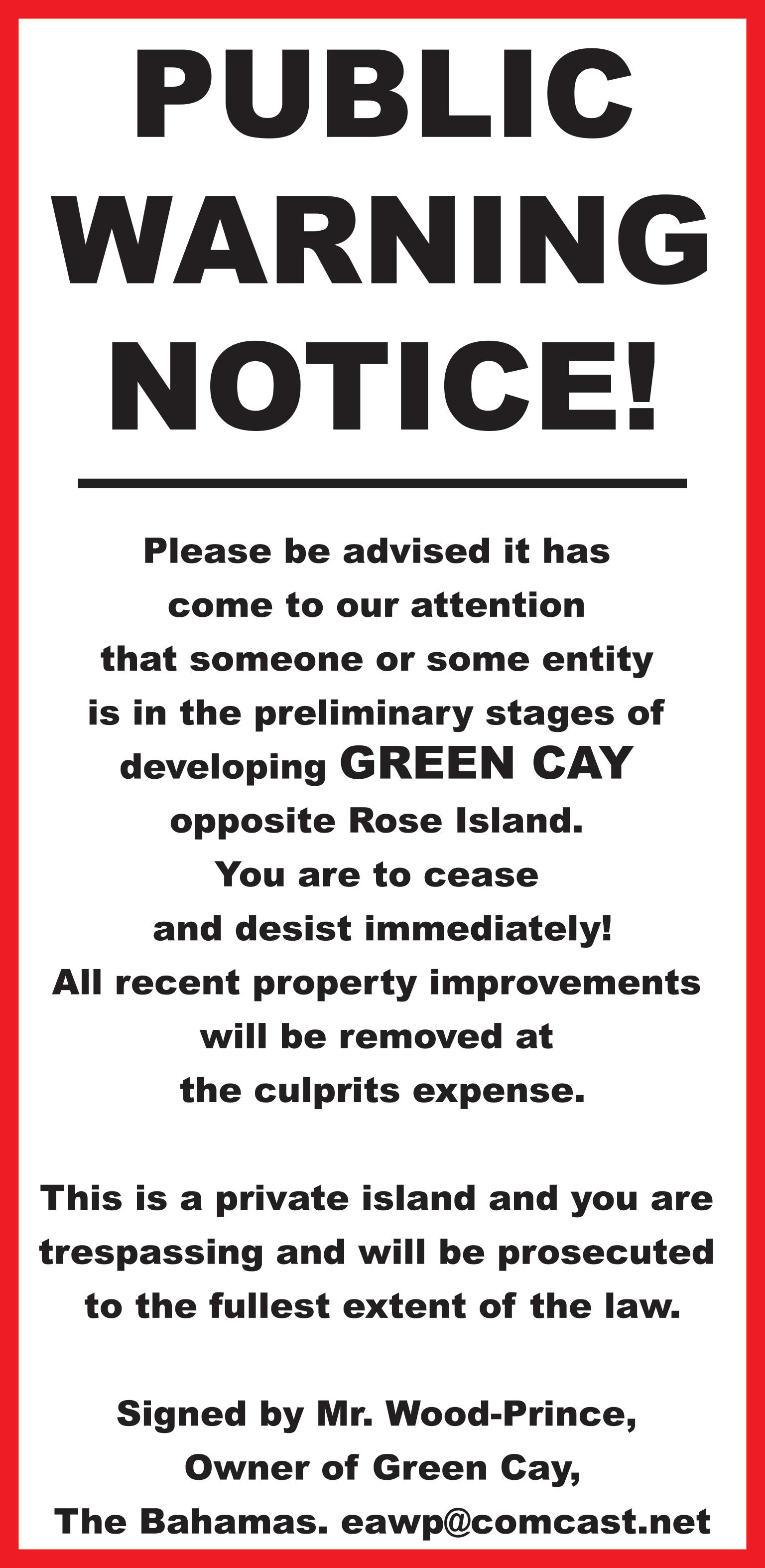 The organisation believes the island provides recreational opportunities for New Providence residents, who have expressed concerns regarding the loss of public access to shoreline areas.