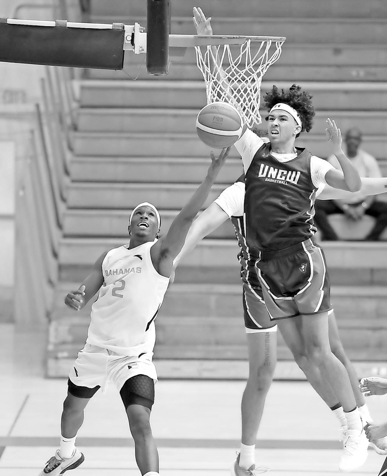 UNC Wilmington had five players hit the doubledigit mark. McGriff poured in 20 points, 10 rebounds and 3 blocks. Josh Corbin was equally as impressive with 19 points, 3 assists and 3 steals. The team collectively shot 53.2 per cent in the win and outrebounded Raw Talent Elite 48 to 38. Bahamas All-Stars vs UNC Wilmington Earlier in the weekend, UNC Wilmington dished out a 36-point beating to the Bahamas All-Stars. The