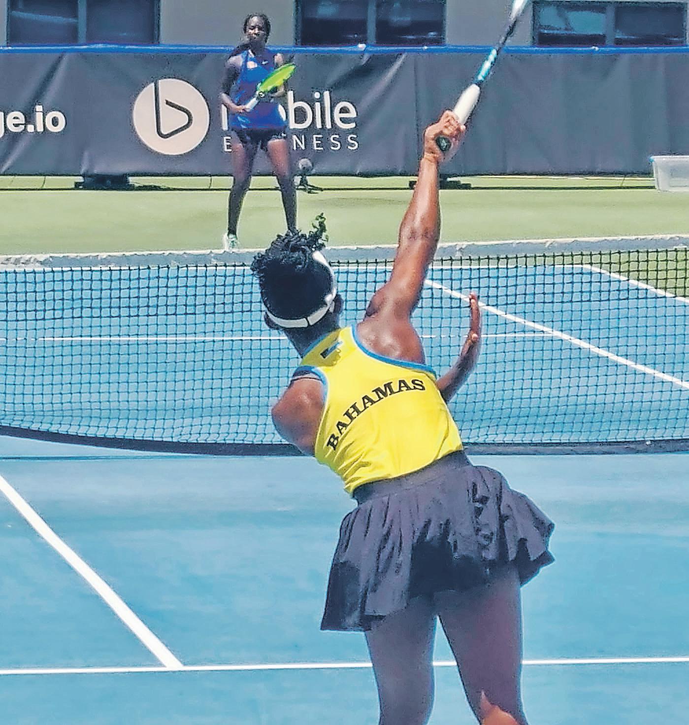 Simone Pratt, the Giorgio Baldacci Open national champion, also had a battle in her singles showdown against Barbados’ Gabrielle Leslie. Pratt trumped her opponent in set one with a comfortable 6-2 victory. The celebration did not last long for The Bahamas as Leslie rebounded in set two 6-4 to force a third set. She proceeded to put her Bahamian competitor away 6-4 to nab a 2-0 lead for Barbados in the threegame series.