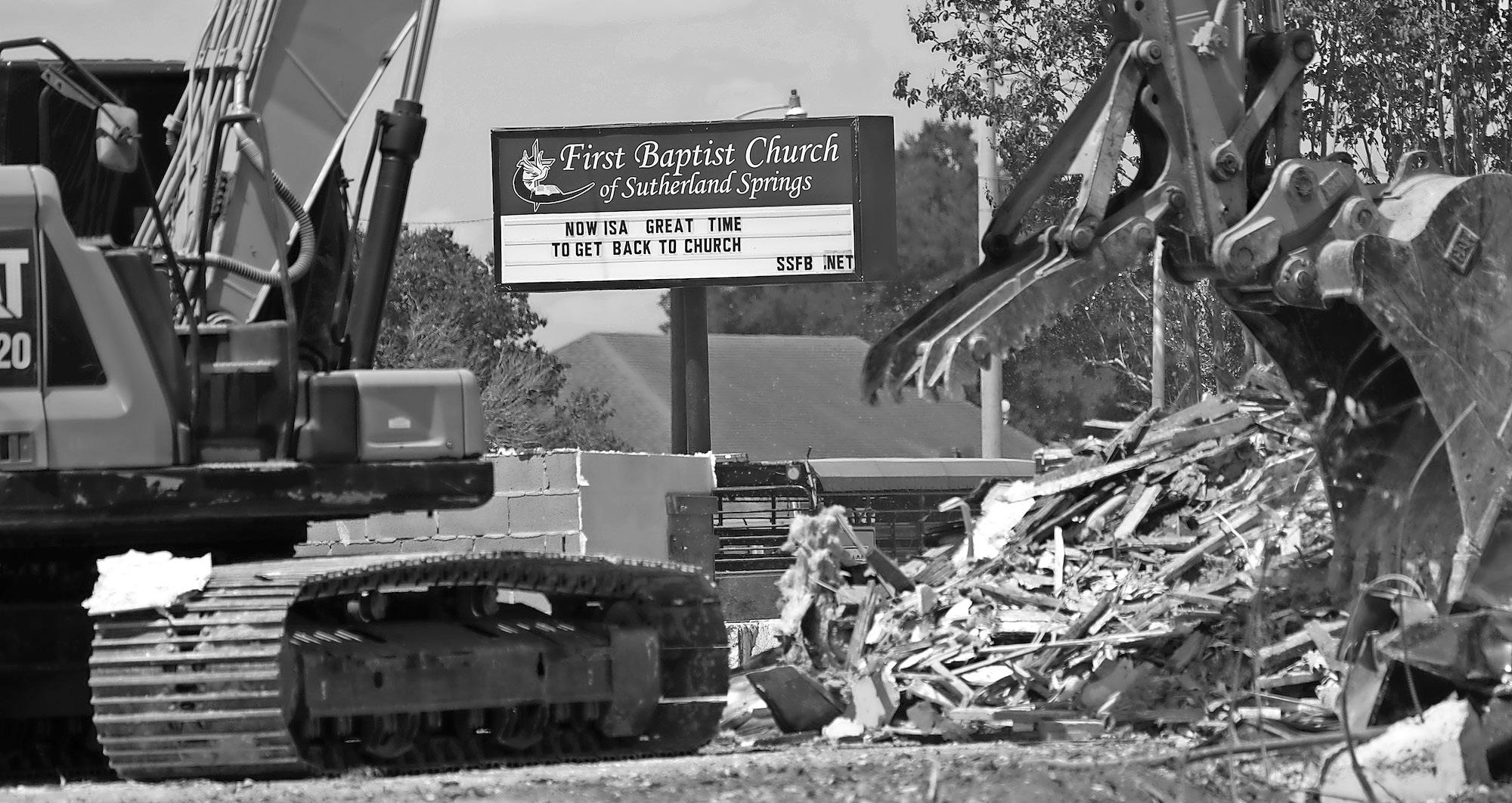 CREWS on Monday tore down a Texas church where a gunman killed more than two dozen worshippers in 2017, using heavy machinery to raze the small building even after some families sought to preserve the scene of the deadliest church shooting in U.S. history.