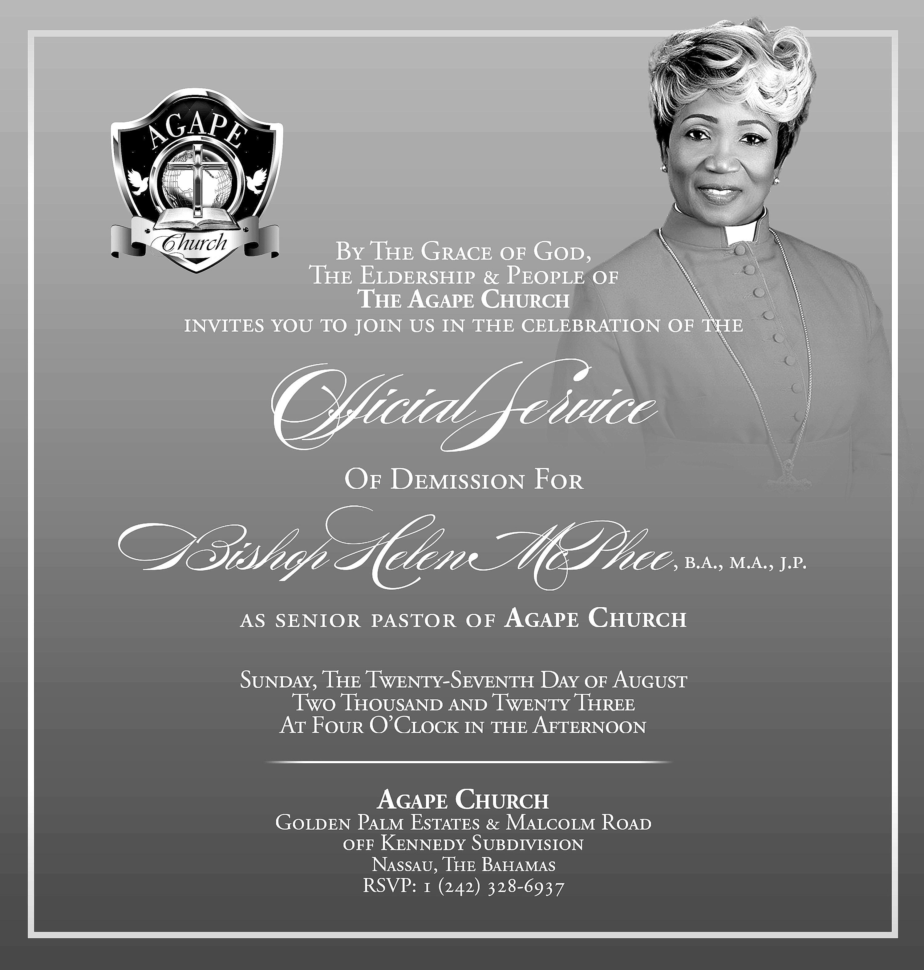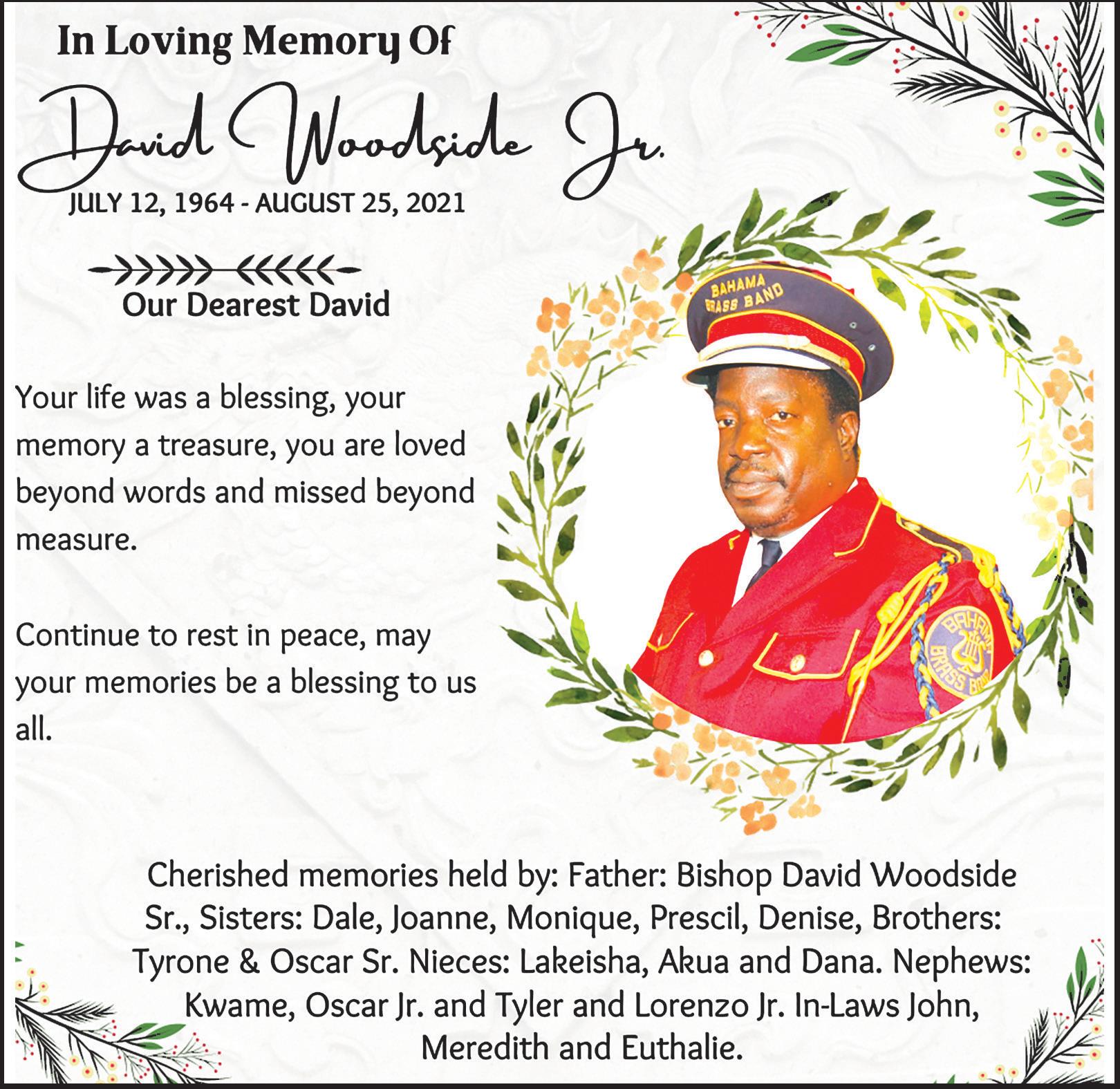 of Bernard Road, Fox Hill, who died on Saturday, 22nd July, 2023, will be held at St. Paul’s Baptist Church, Bernard Road, Fox Hill, on Saturday, 26th August, 2023 at 11:00 a.m. Reverend Nicholas Rahming, Bishop J. Carl Rahming and Reverend Denero Rahming, assisted by other Ministers of the Gospel will officiate. Interment will follow in Lakeview Memorial Gardens & Mausoleum John F. Kennedy Drive & Gladstone Road.