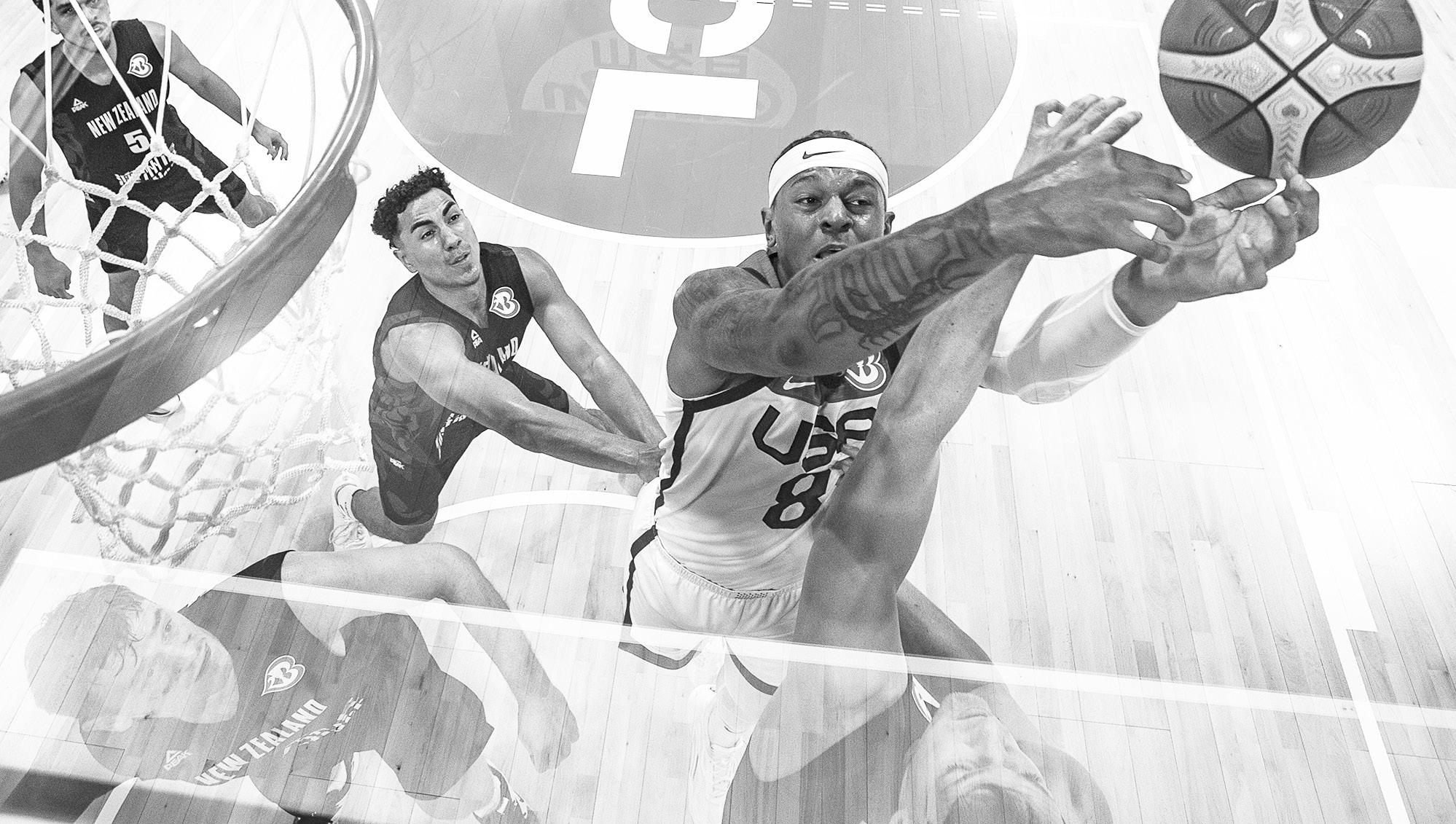 PAOLO BANCHERO, of the USA, vies for the ball during the FIBA Basketball World Cup Group C game between United States and New Zealand in Pasay, Metro Manila, Philippines on Saturday. (Ezra Acayan/Pool Photo via AP)