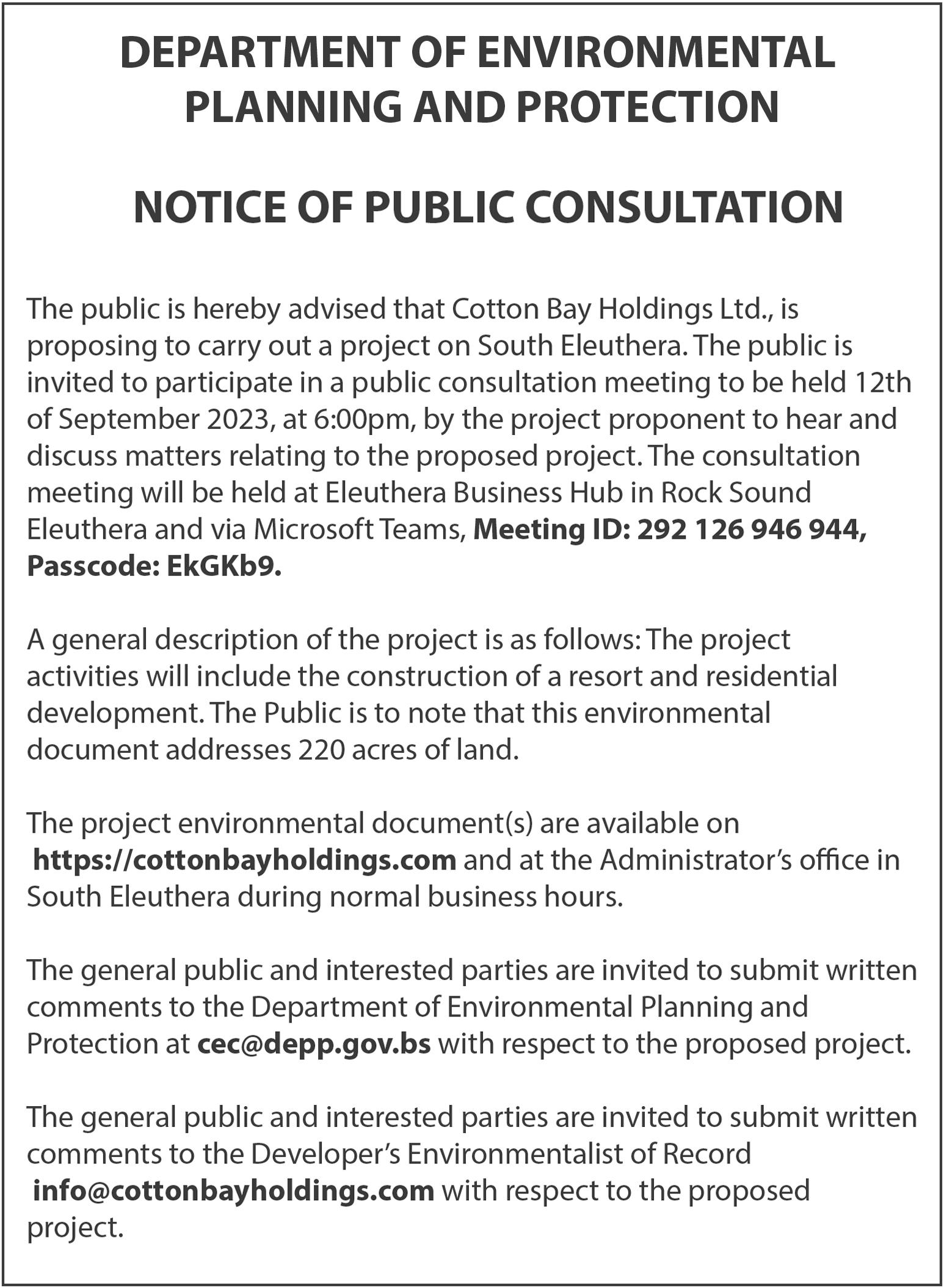 Plan (EMP). Key elements of that plan involve the demolition of derelict buildings on the 13 privately-owned acres it acquired on Paradise Island’s western end, site clean-up and preparations for construction.