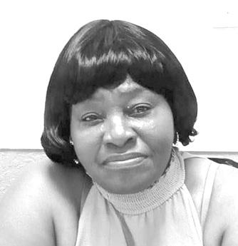 Left to cherish her memories are her daughter: Dana Lyas; grandchildren: Salvataro Beneby (Aniskha), Ruby Lyas, Toddrick Gunn, Melonie McKenzie-Lloyd, Stacy McKenize, Tracy McKenzie, Denard McKenzie, Steven McKenzie, Jamal Sutherland, Hadiya Maynard, Nandi Maynard, Ayinde Maynard and Anwar Gray; great grandchildren: Taro Beneby, Jermaine, Jeremy and Rayon (Melonie), Jelani Lyas, Hakim Maynard, Naima Maynard, Amina Maynard and Arya Maynard; great great grandchildren: Taro Jr. and Taniyah Beneby; brothers: David “Smudge” Patton (Cheryl); sisters: Lillian Edwards (deceased) and Rosemary Patton (deceased); sisters-in-law: Cleomie Mobley and Cherly Patton; sons-inlaw: Anthony Lyas, Lindberth Sutherland, Gregory Maynard (deceased); nieces: Ann and Veronica Edwards, Venessa Scott, and Patrice Pierre; special cousins: Lillian Wilson, Judy Minnis, Joanne and Lois McDonald; other relatives and friends including: Maynard Family, Roselyn Laing, Lee Duncombe, Christene Munnings and Family, Warren Brown,