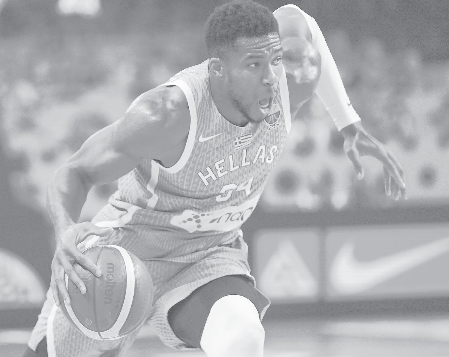 GREECE’s Giannis Antetokounmpo in action during the Eurobasket, European Basketball Championship quarter final match between Lithuania and Greece at the Riga Arena in Riga, Latvia, yesterday. (AP Photo/Sergei Grits)