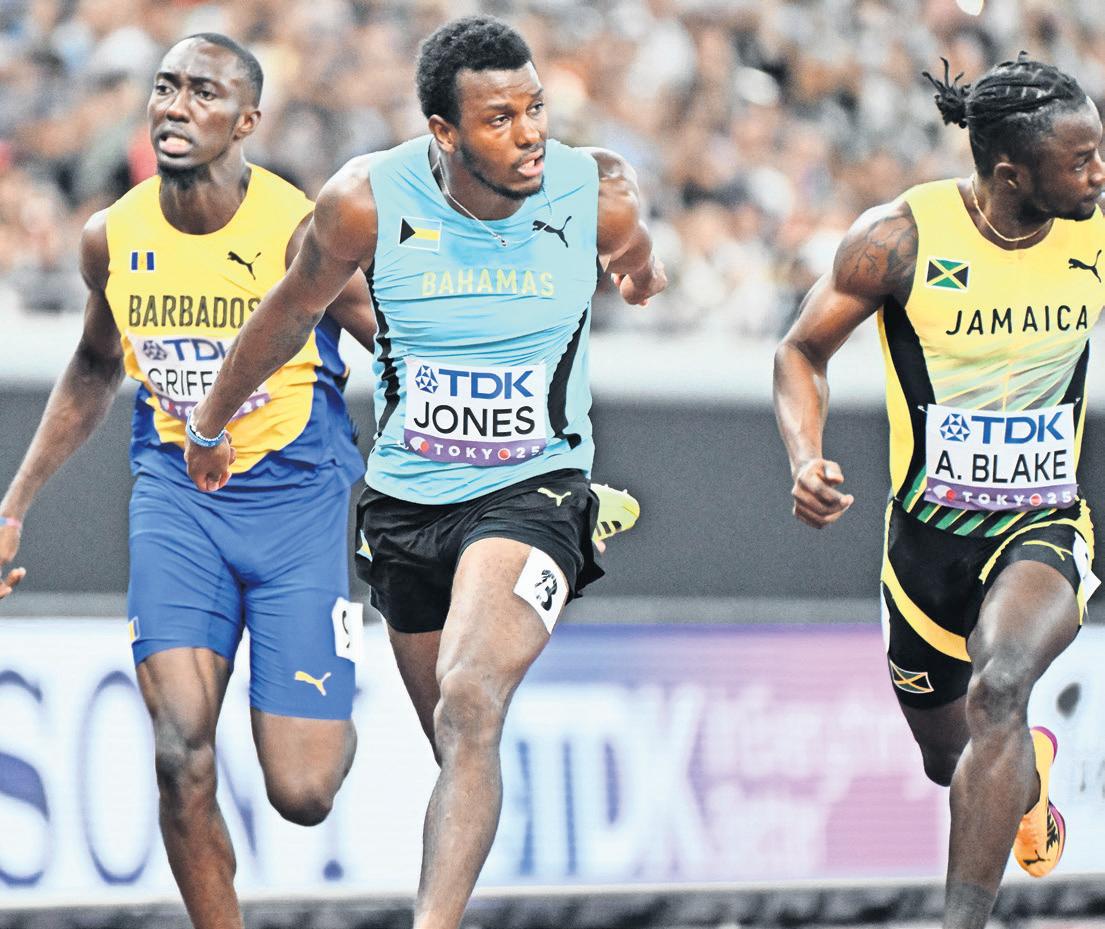 TOKYO, Japan — Terrence Jones was just ecstatic that he was able to match up against the best of the world and made it to the semifinals of the men’s 100 metres at the 20th World Championships. The 22-year-old Grand Bahamian native clocked 10.10 seconds for sixth place in the second of three heats of the semifinals on Sunday at the Japan National Stadium that was won by American Kenny Bednarek in the round’s leading time of 9.86.
