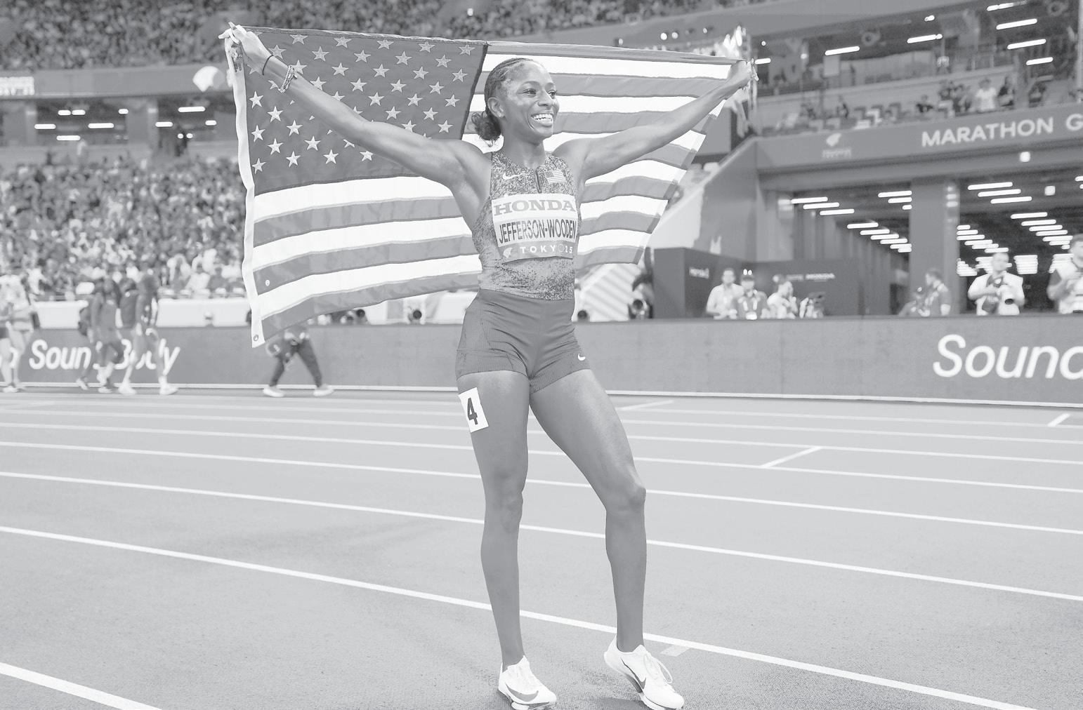 While Jefferson-Wooden jumped and shouted into the stands before draping the American flag around her shoulders, Richardson slowly paced the inside of