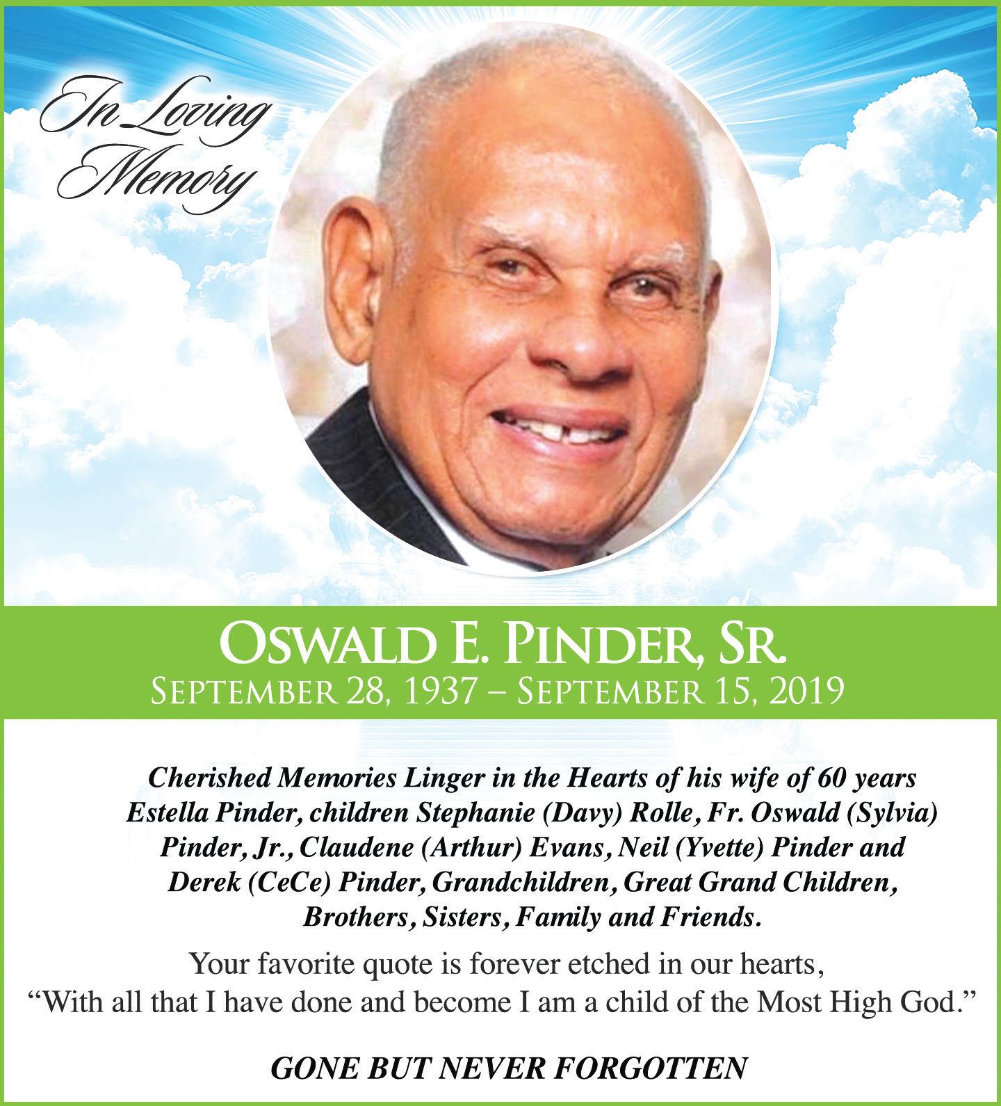 Left to cherish his memories are step son: Joseph Wesley “Cookie” (Rachael) Pople; step grandchildren: Karen Strachan, Katisha, Khadijah, Charles Jr., Nasson, Juania, Nadia and Anwar Pople, Nakeshia (David) Bain, and Trayvon Laing; brothers: Moses (Rev.), Zephaniah and Cyril (Margaret) Pennerman; sisters: Willimae Hinsey and Clothie Lockhart (Rev.); nephews: Steve (Vernitta), Hagard (Geletta), Robert (Neakia), Alexander and Quinton (Vanessa) Pennerman, Rev. Dr. Allan (Dr. Annette) Ingraham, Kevin (Chidinma) Ingraham, Alden and Jamarl (Kenrica) Lockhart, Andre Davis and Gregory, Marvin, Cyril Jr., and Marvin Massitumbo Pennerman; nieces: Eunice (Delvin) Taylor, Marguire and Ruth Pennerman, Maria (Lynden) Knowles, Glendena (Elijah) Mills, Dr. Shantell (Reno) Lewis, Michelle Pennerman, Renae Nottage, Antionette (Derrick) Rowell, Martina (Lenny) Wilson, Corene Penn and Chardonnay Pennerman; grand nieces and grand nephews: Ashley and Templeton Jr. Sawyer, Cristian, Jamarl Jr., Alyssa and Kiarra Lockhart, De’Lecia and Danielle Taylor, Taniqua, Bre’Shoan, Taquan, Meghan, Bella, and Bria and Harry Pennerman, Gary (Alexis) Black Sr., Leonard Saunders, La-Shae Johnson, Keith and Ricardo Hinsey, Derrick, Corey, Tanisha, Shanae, Lauren and Avery Ingraham, Alani and Austin Rowell, Beau Davis and Rain Lewis; great grand nieces and nephews: Angela Pennerman, Rashanti, Gary Jr., Alex, Garinique and Miracle Black, Sa’Nyah, Elliyah and Kai’yah Brathwaite, Leonique and Leoniyah Saunders, Caleb Sawyer, Ricana, Rianna and Racquel Kaden, Karter and Kennedy Hinsey; aunt: Sheva Rolle; god child: Delerice Wells; numerous cousins including: Min. Wilfred (Sadie) Bastian, Paul, Emily and Marjorie Bastian, Min. Preola Rolle, Roland (Alice) Rolle, Sheilamae Smith, Neville, Rosalie and Benjamin Curtis, Ismalene and Clara Rolle, Garnell and Alice Bastian, Rev. William Pennerman, Cedric, Errol, Archealus and Samuel Pennerman, Carolyn Williams, Pearliemae Francis, Rev. Hilton Bullard, Mary, Martha and Oscar Bullard, Mayglena Penn, Joel Boyd, Ralph