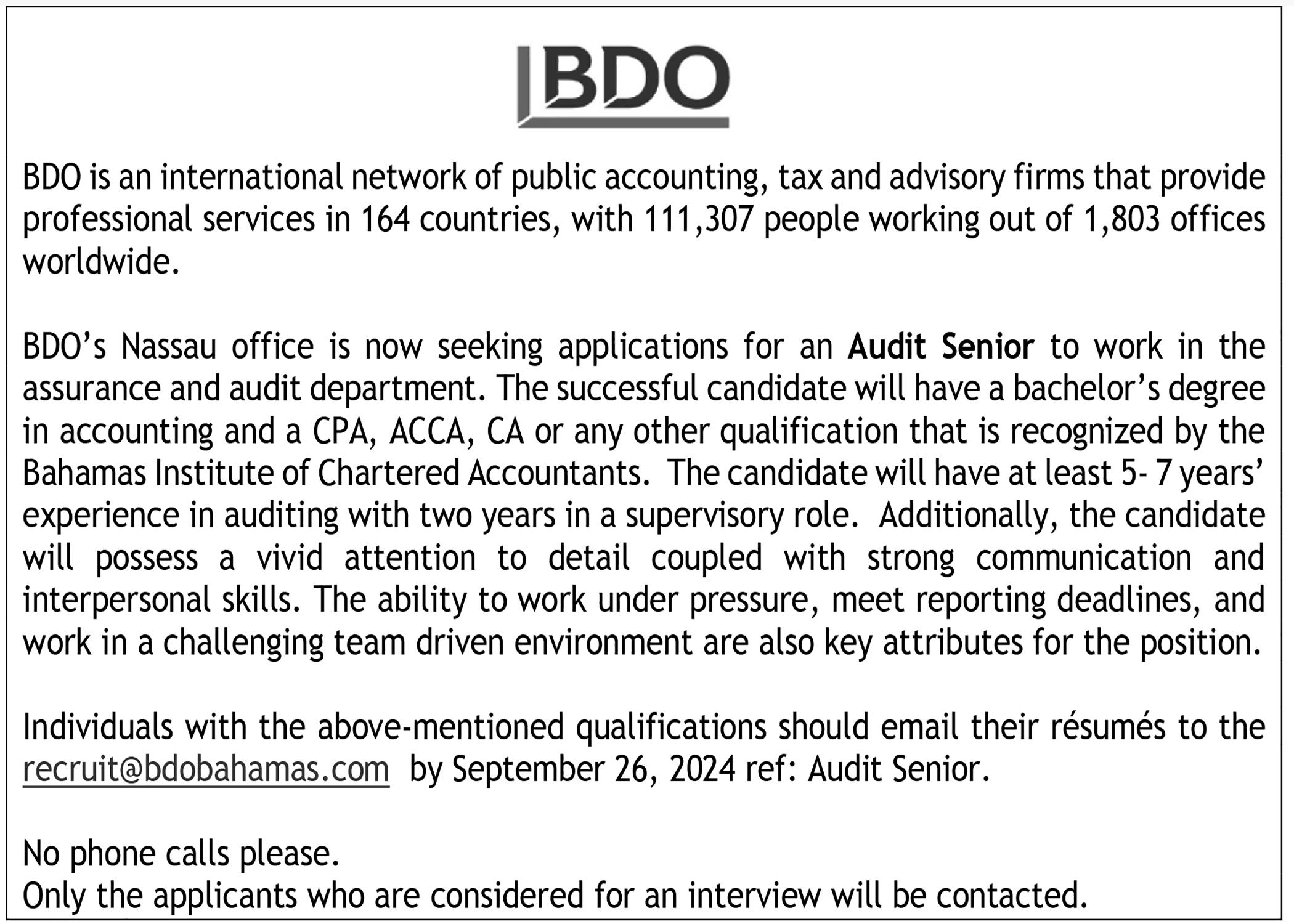 NOTICE is hereby given that MILANDE PETIT-DE of Nassau Village, New Providence, Bahamas, is applying to the Minister responsible for Nationality and Citizenship, for registration/naturalization as a citizen of The Bahamas and that any person who knows any reason why registration/naturalization should not be granted, should send a written and signed statement of the facts within twenty-eight days from the 20th day of September, 2024 to the Minister responsible for nationality and Citizenship, P.O. Box N-7147, Nassau, Bahamas.