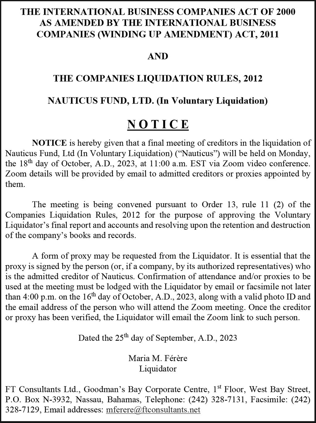 The ministry’s statement said Mrs Moxey, Mr Lightbourne and Senator Griffin will meet with officials and private investors to discuss investment opportunities in Grand Bahama, technology, innovation and sustainable environmental initiatives.