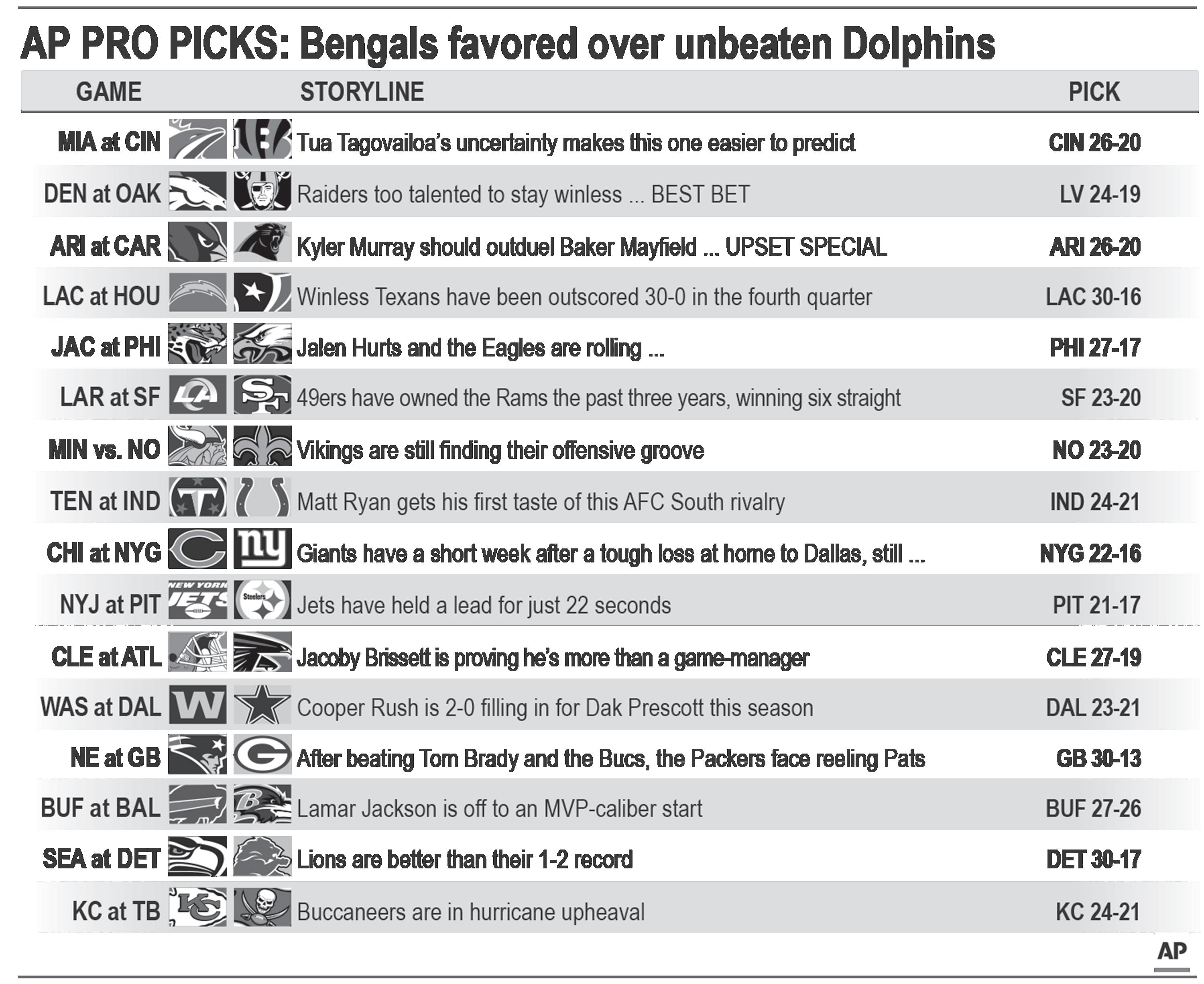 Last Week: Straight up: 10-6. Against spread: 10-6. Season: Straight up: 27-21. Against spread: 24-24.