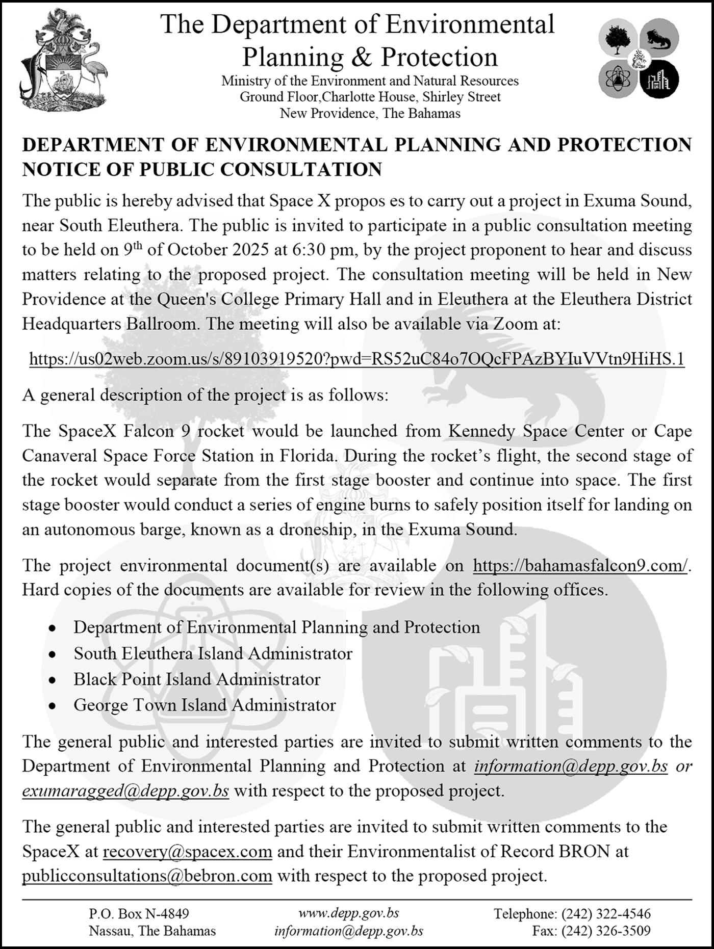 respectively. These inquiries have come from Exuma residents and businesses, as well as counterparts throughout The Bahamas.