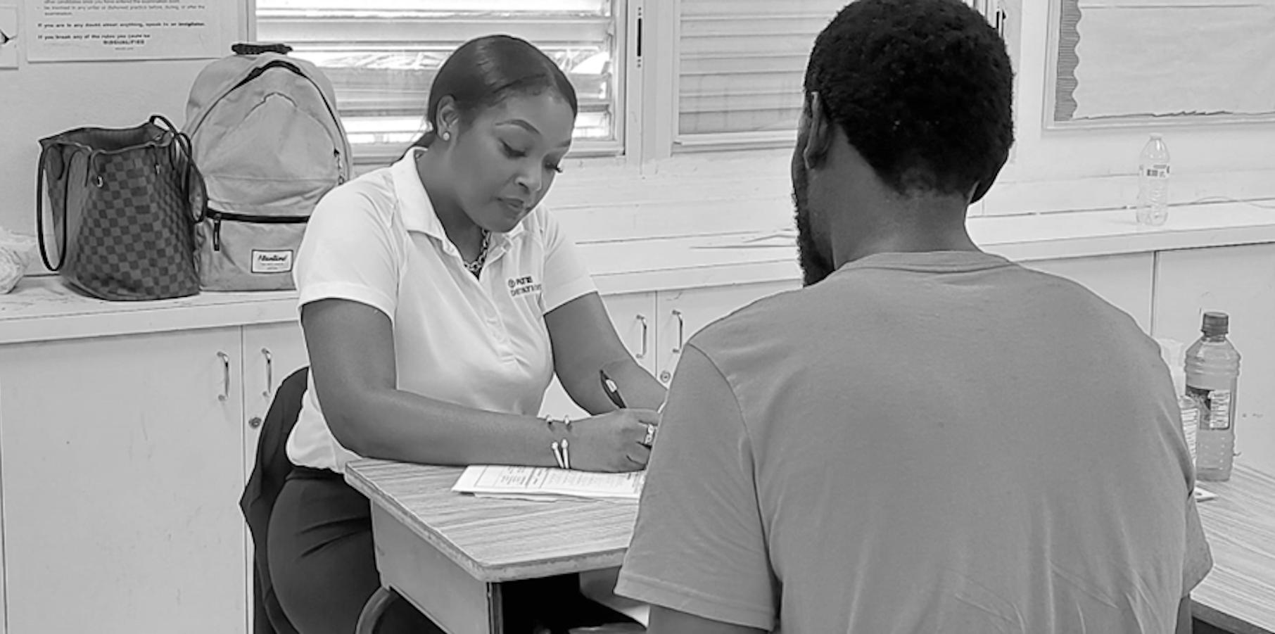 ROYAL Caribbean International’s Nassau-based recruiter, Tia Ferguson, interviews an applicant at the cruise line’s North Andros job fair on August 10, where 31 applicants received job offer letters. but the qualifications of so many candidates,” said Philip Simon, president of the Royal Beach Club at Paradise Island and