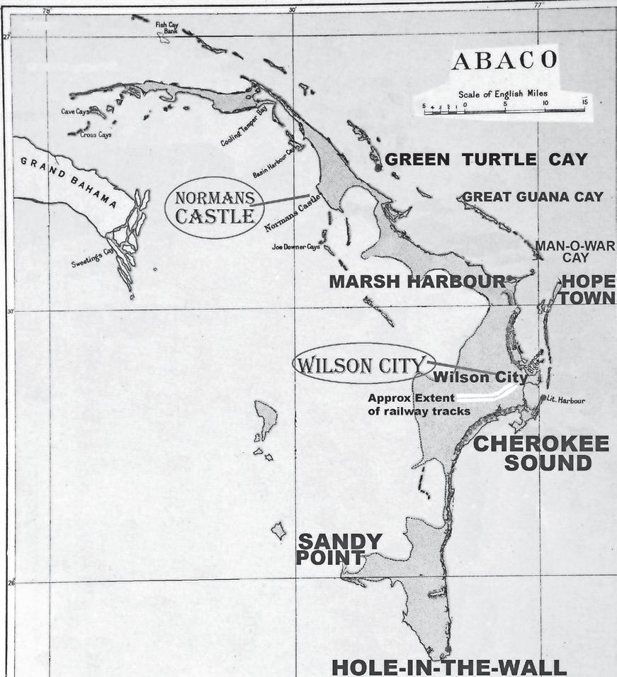 The Rail and Locomotive History of the Baha mas (2007) by Darius Williams tells that “the project was launched, in grand style, at Wilson City”, constructed at Spencer Point, Abaco, not far from an 18th-century Loyalist’s settlement called Sweeting’s Village.