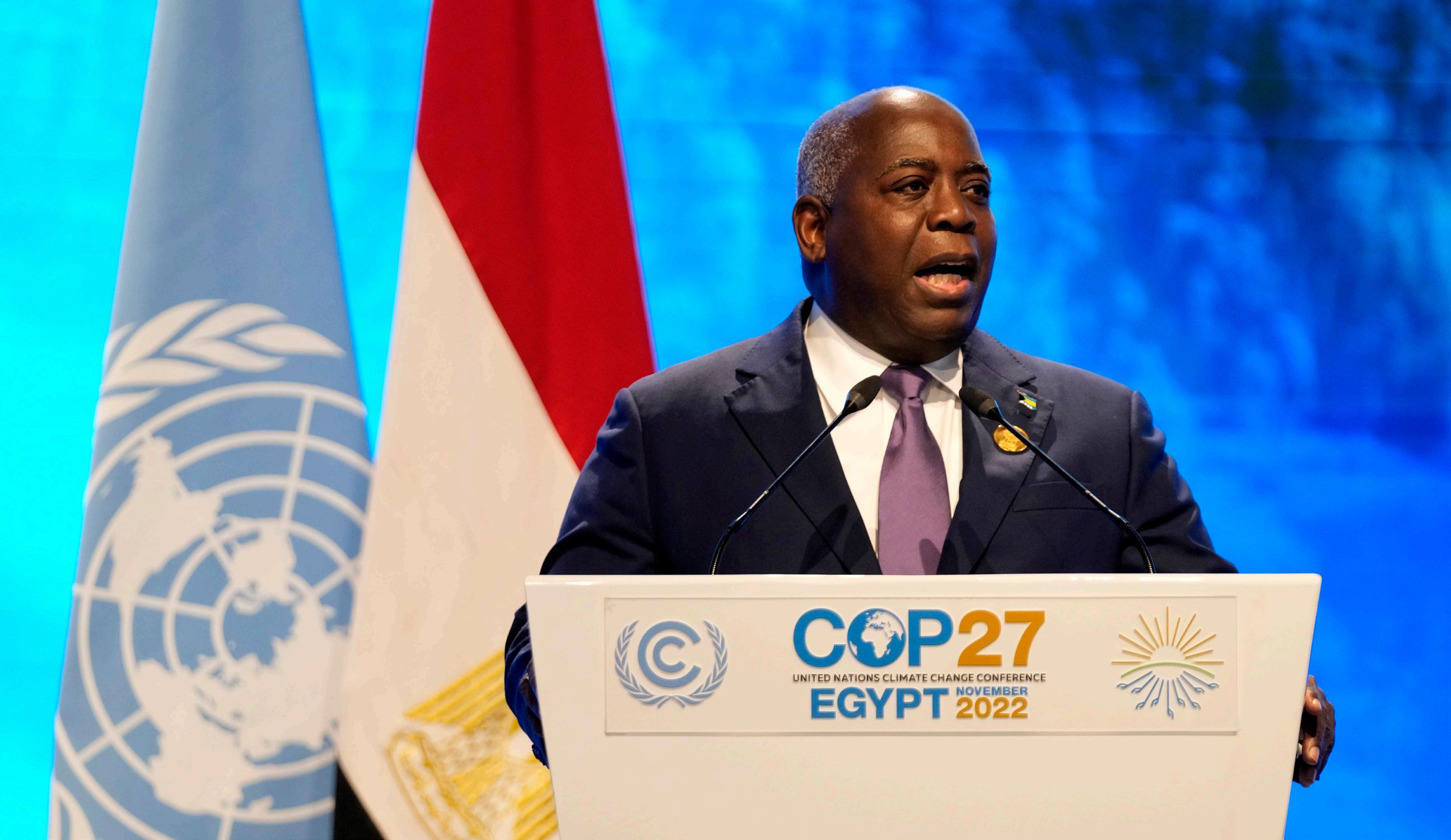 PRIME Minister Philip “Brave” Davis speaks at the COP27 UN Climate Summit yesterday.