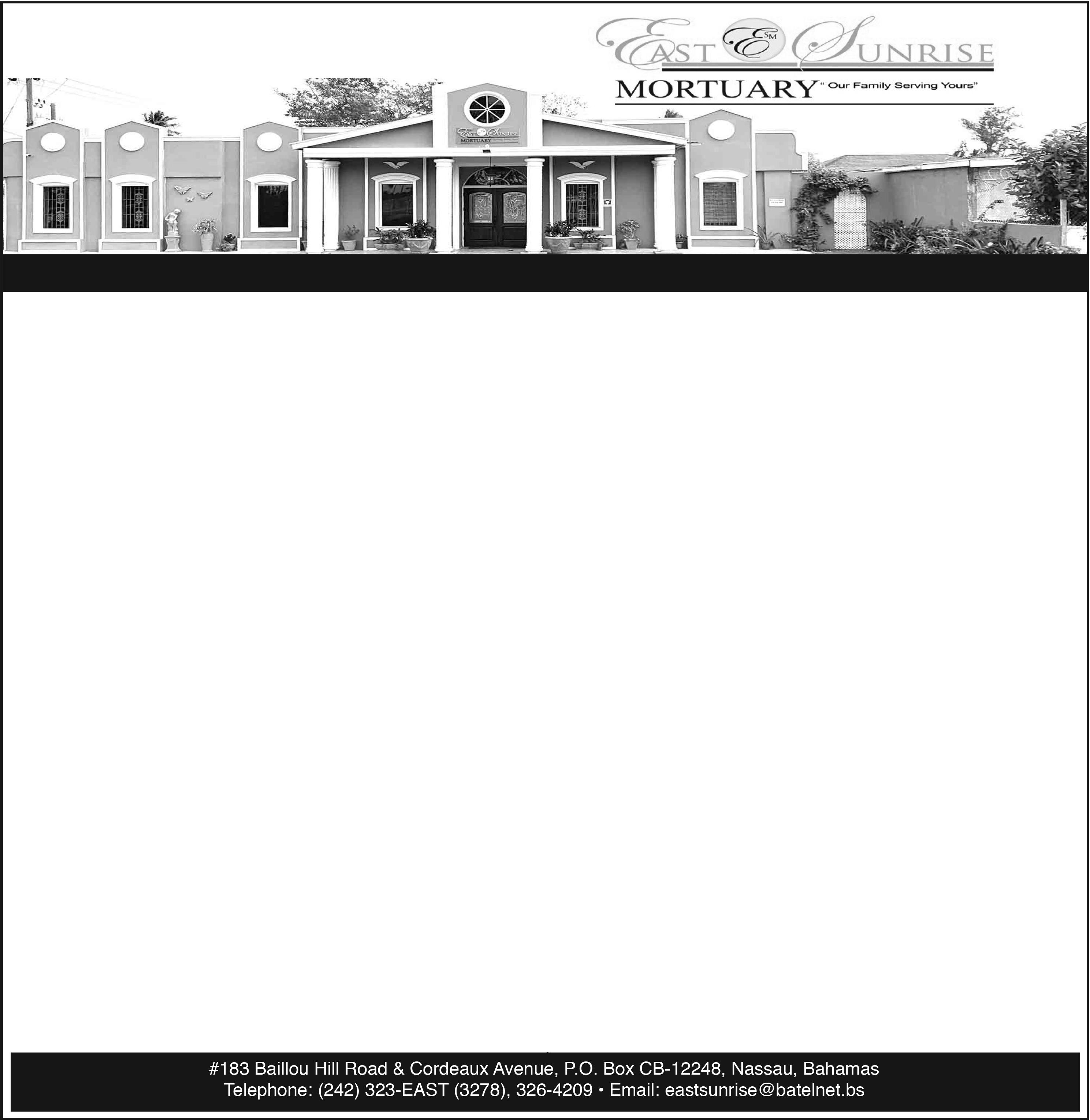 Arrangements by Vaughn O. Jones Memorial Center Mt. Royal Avenue & Talbot Street, New Providence, The Bahamas.