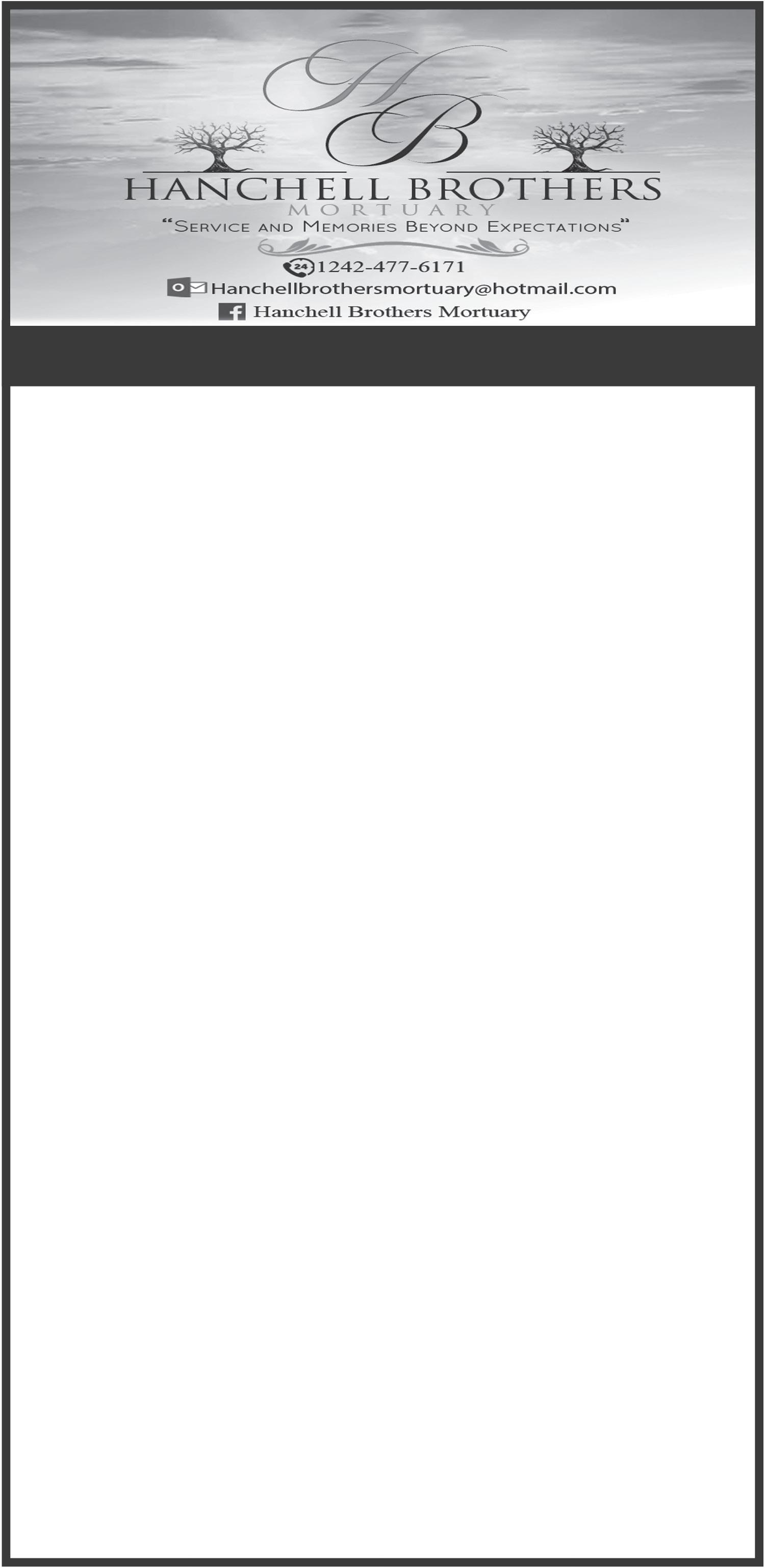 Left to cherish her legacy are her sons: Jeffery, Richard, Eddison and Andrew Hepburn; daughter: Josephine Hepburn; sons-in-law: Ross Knowles and William Carey; daughterin-law: Marva Hepburn; grandchildren: Annmarie, Roscoe, Monique, Shantel, Alphonso, Joshua and Alexandria Hepburn, Helena Hepburn, Presley, Pedro Sr. and Ricardo Bullard, Shelton and Justina Miller, Kashella Miller, Perez and Perry Hepburn, Germaine and Garniata Knowles, Edricka and Addison Hepburn; Adnicqua Fynes; great grandchildren: Alicia and Kadesha Rolle, Shakara Prosper, Pedro Bullard Jr., Rubuen and Johnette Bullard, Chamika and Chavahdo Williams, Decarlo Bullard, Maria Cooper, Josiah, Shakinah, Davaunte’ and Kayla Miller, Dakeil Curry, Taniah and Taliyah Major, Persia Hepburn, Norri Archer; great great grandchildren: Aria Rolle, Davonya Miller, Rj Bullard, Rubuen Pinder, Lazarrio and Chavahdo Williams, Kyl Bullard; god child: Eric “Jamie” Rahming; nieces: Denise and Michaelette Hepburn, Sally, Sylvia, Virginia Rolle, Patsy Hepburn, Joycelyn McPhee, Georgette, Madeline Gardiner, Angelia and Cheryl Hepburn, Charlotte and Winifred, Judith, Marsha Whymms, Charlotte Dorsett, Veronica Gordon, Winifred Woods; nephews: Barry, Michael “Peas” (Deceased) and Travis Hepburn, Ronny Dorsett, Junior Ferguson, Brian and Johnny Whymms; other relatives: Edward Ferguson, Evangeline Penn and Family, Dorothy Rahming and Family, Nicola and Mervin Fynes and Family, Maxine Knowles and Family, Emerson and Alice Ramsey and Family; special friends: Pamela King, Claudine White, Diane Miller, Benjamin Mackey, Pedro and Terio Henfield, The Mackey and Rolle Familes, The Jbr Family, The Dorsett, Grant and Step Street Families and The Fox Hill Community at large and relatives and friends too numerous to mention.