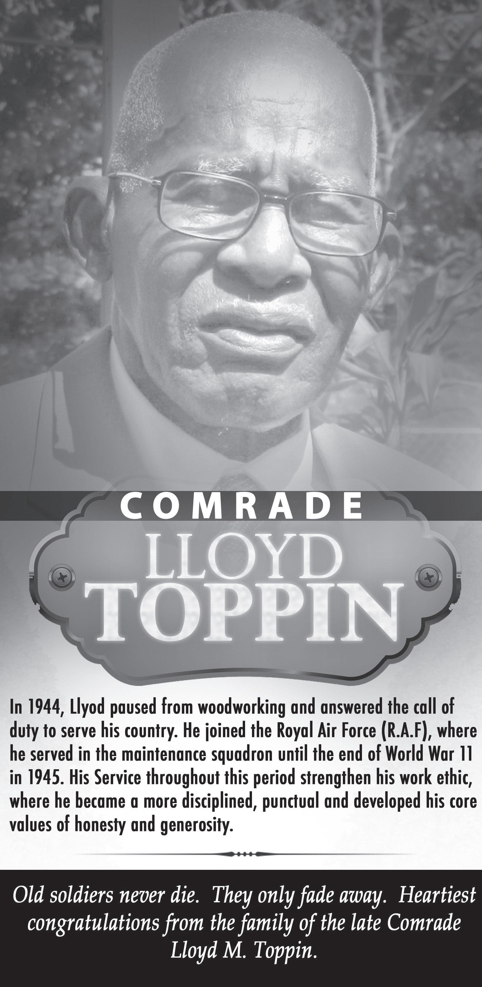 • Comrade Vernon Pinder (97) - New Providence, Nassau, Bahamas (Royal Air Force) and finally;