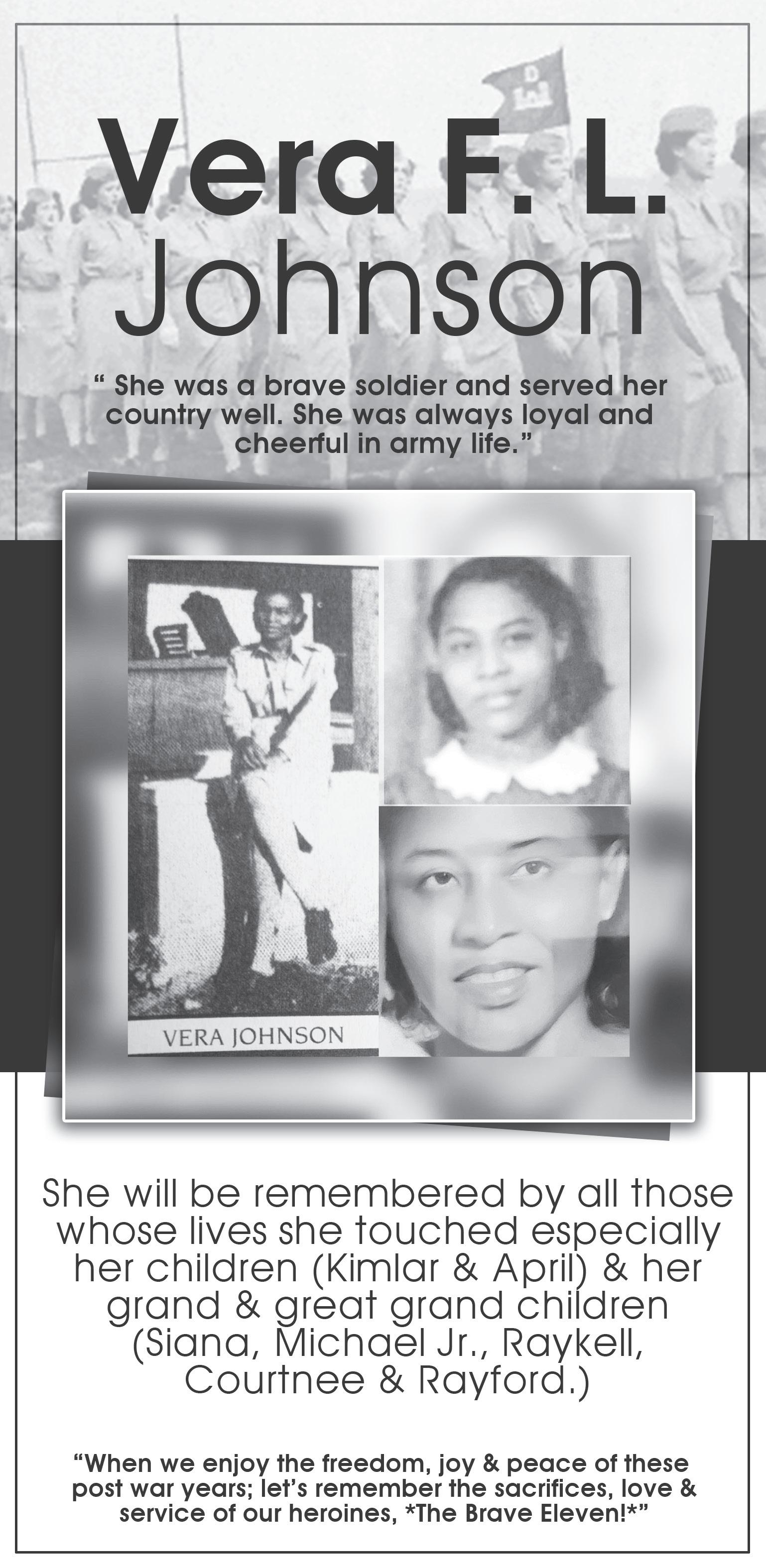 PRIVATEThe Late WNC Officer Private Vera Johnson, was born in Nassau, Bahamas, in 1925.