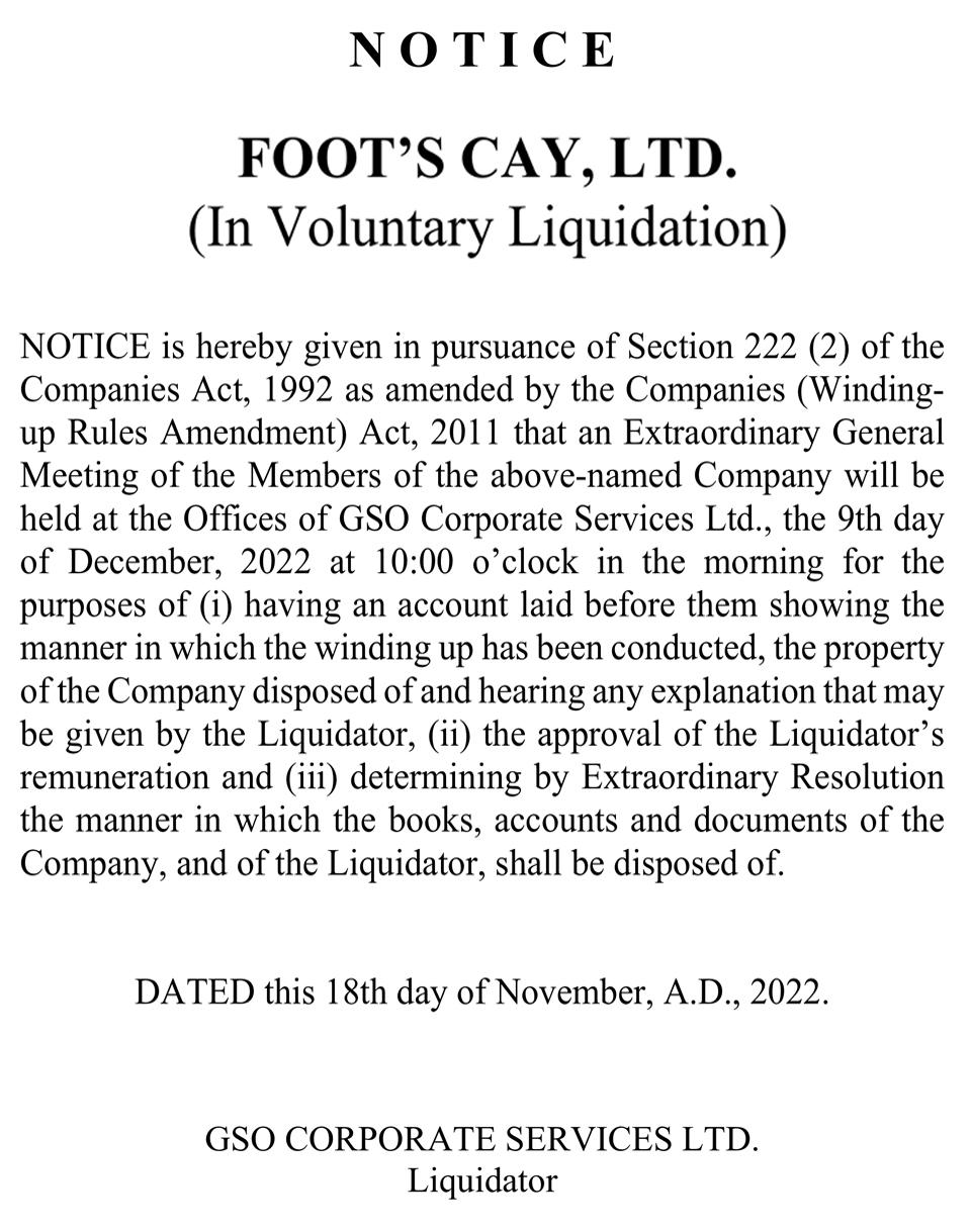 Notice is hereby given in accordance with Section 138 (4) of the International Business Companies Act, 2000, the Dissolution of FEAJCM LTD. commenced on November 16, 2022. The Liquidator is Felipe De Araujo Costa Ubach Monteiro, whose address is R Dr Luis A Q Aranha 00173 Apt 111VL Madalena, Sao Paulo SP, Brazil.