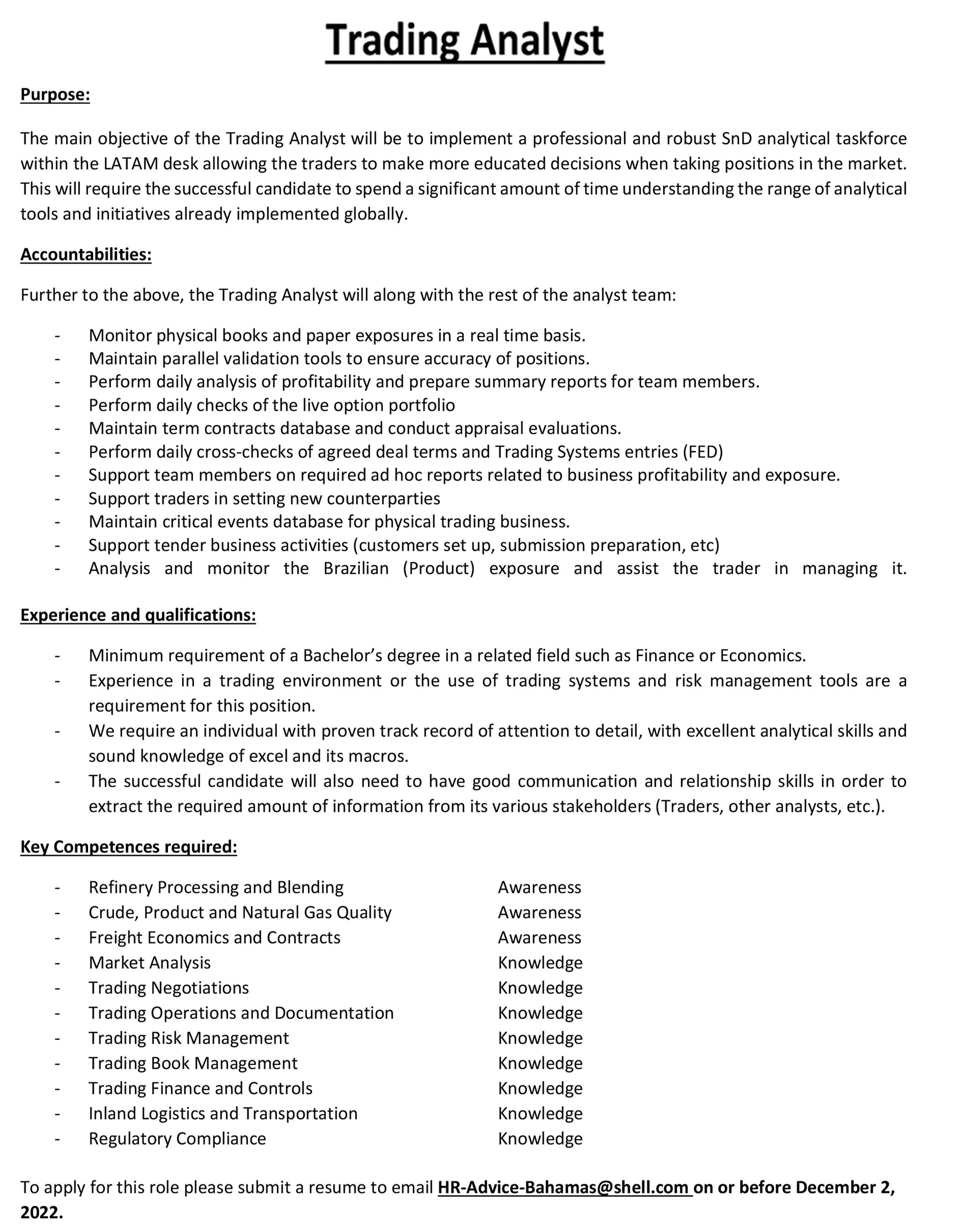 • Bachelors degree in accounting or finance • CPA Designation • Previous work as a senior accountant or a senior auditor • In depth knowledge of IFRS Accounting Standards is a must (specifically IFRS 9, IFRS 15 and IFRS 16) • Experience preparing financial statements • Experience overseeing year end audit engagements • Advanced knowledge of Microsoft Excel • Good Communication skills – written and verbal Please submit all resumes to humanresources@airportsbahamas.com on or before November 8th 2022. JOB OPPORTUNITY SENIOR ACCOUNTANT (6 MONTH CONTRACT) QUALIFICATIONS AND REQUIREMENTS