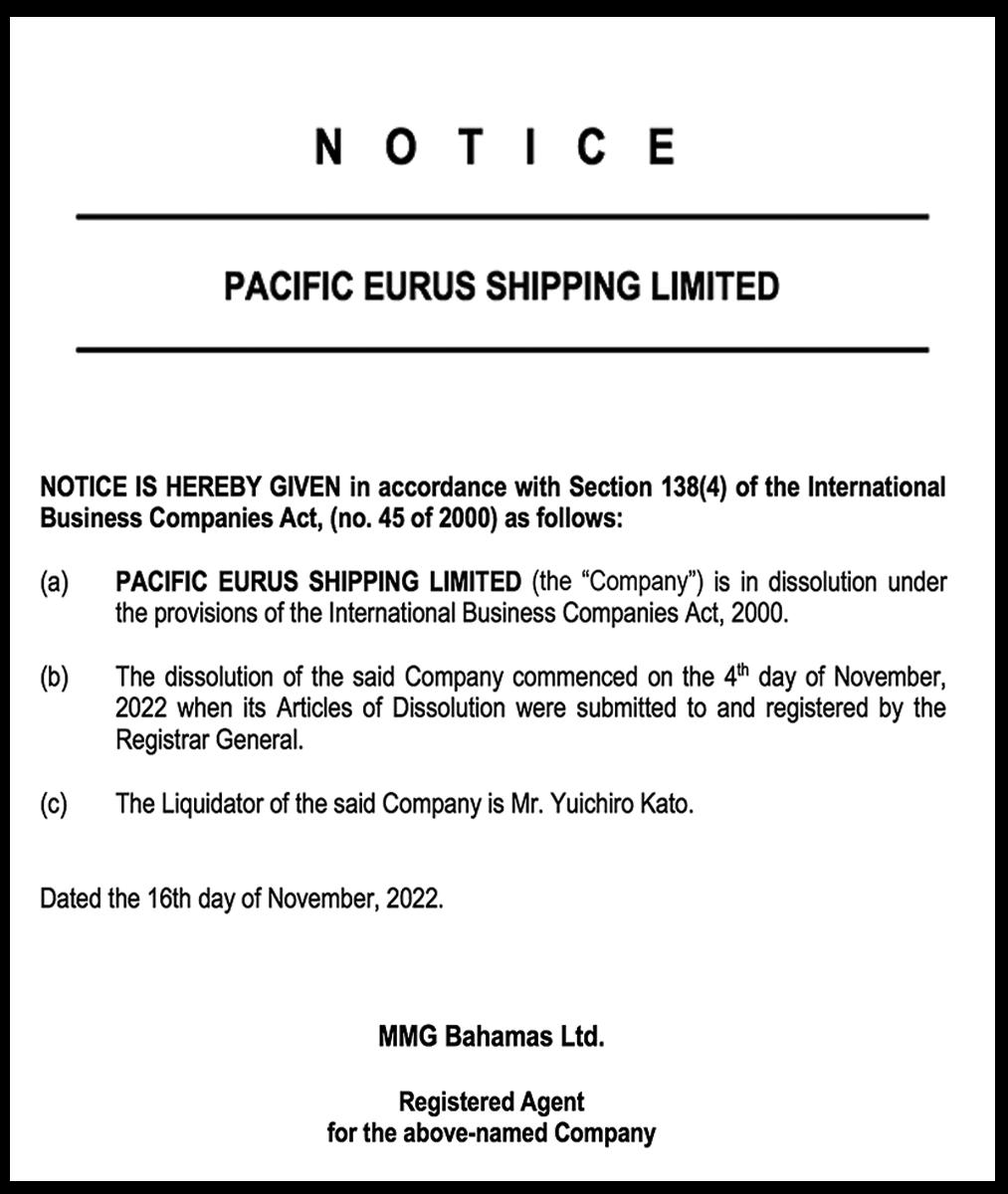 Notice is hereby given in accordance with Section 138 (4) of the International Business Companies Act, 2000, the Dissolution of MARAJO LTD. commenced on November 16, 2022. The Liquidator is Frederico Jose Correa Lobato, whose address is ua dos Caripunas 1399 ap 201, CEP 66033-230, Belem, PA - Brazil.
