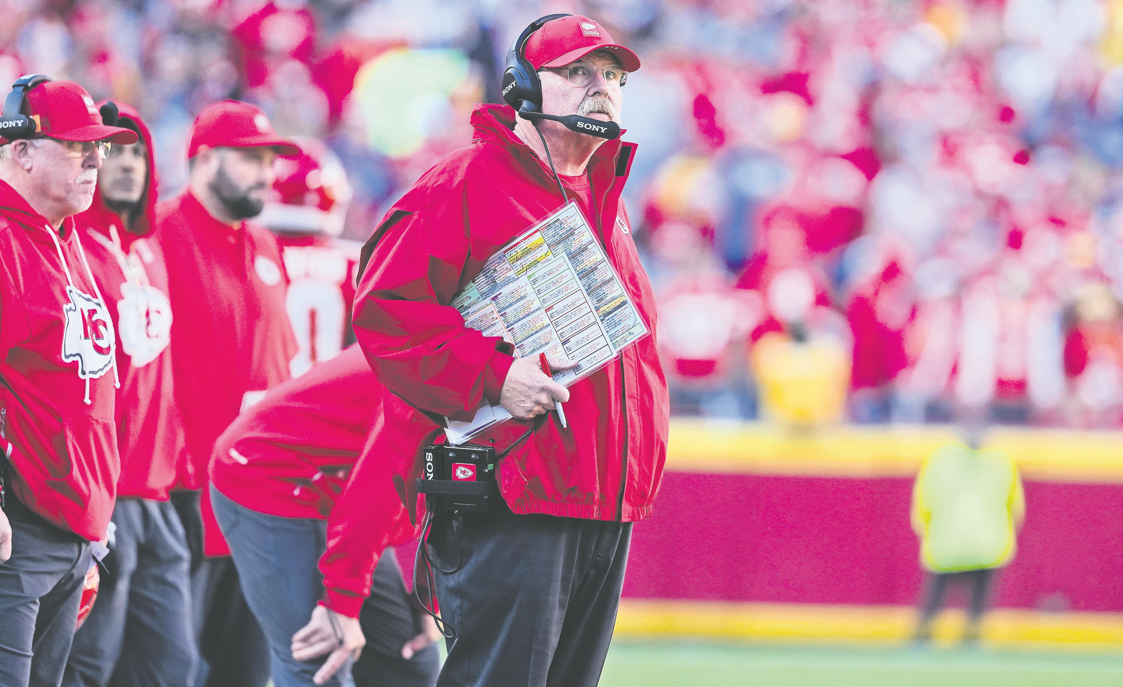 KANSAS City Chiefs head coach Andy Reid on the sideline during the first half of an NFL football game against the Indianapolis Colts yesterday.