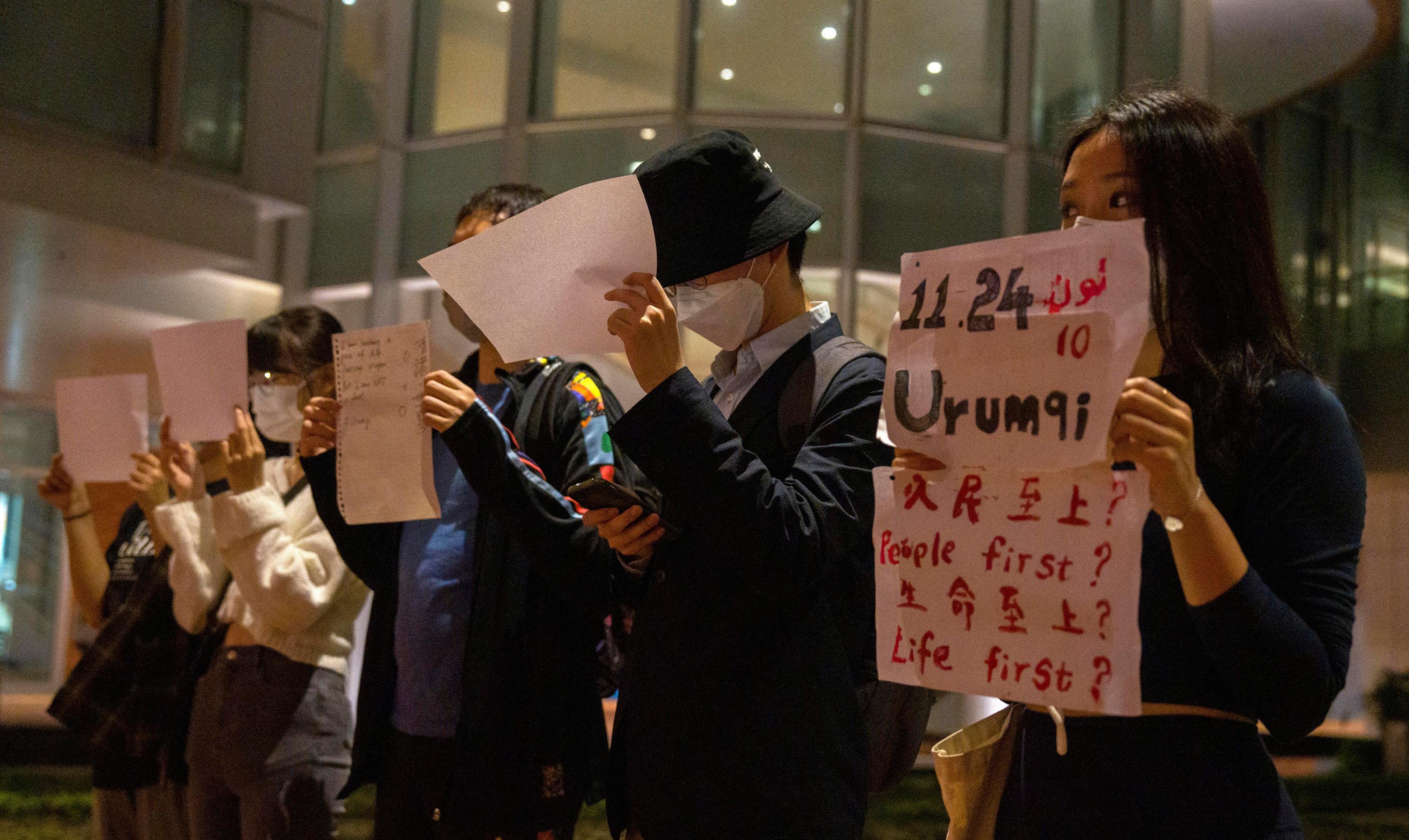 At one point during the second half, Qatar fans held aloft a large Palestinian flag that said “Free Palestine” on it.