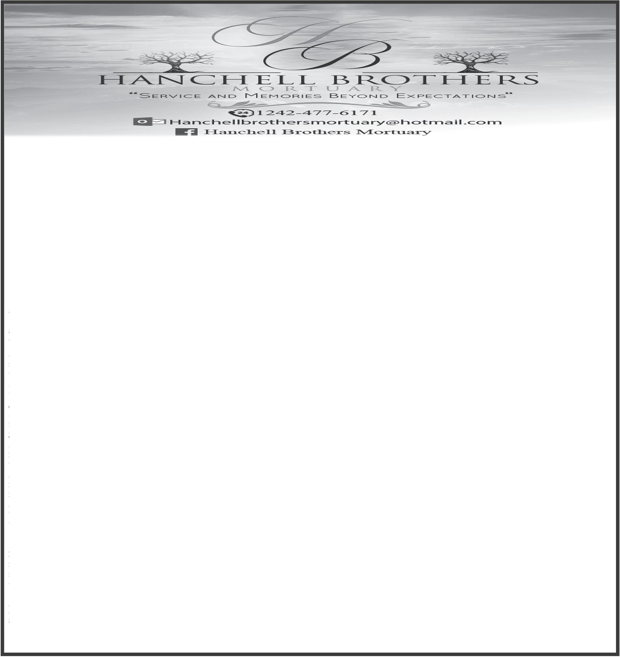 Interment will follow in Woodlawn Gardens Cemetery, Soldier Road, Nassau.