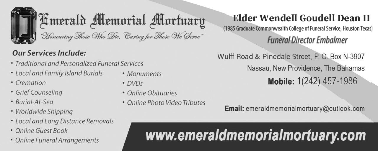 Funeral arrangements are being handled by Evergreen Mortuary, Parkgate Road, New Providence, Bahamas and will be announced at a later date.