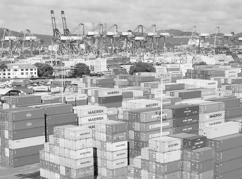 SHIP containers are stacked at the Panama Canal Balboa port, operated by the Panama Ports Company, in Panama City, Sept. 20, 2025.