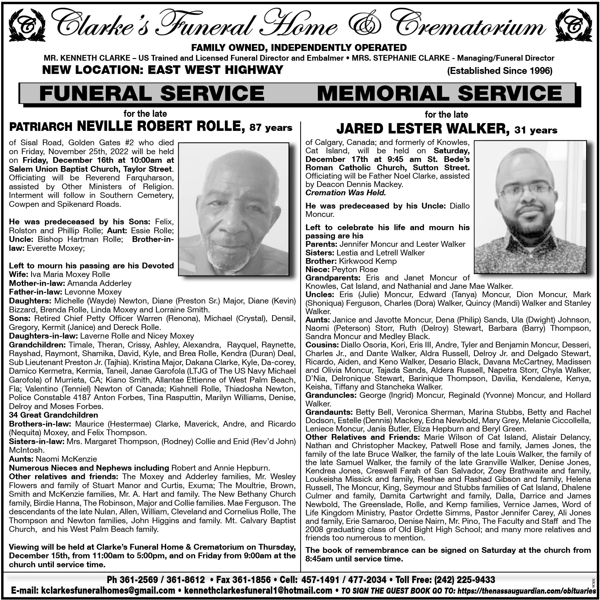 Relatives and friends may pay their last respects at Rest On Funeral Chapel Ltd, Mount Royal Avenue and #19 Kenwood Street on Saturday, 17th December, 2022 at 10:00a.m. to 4:30p.m.