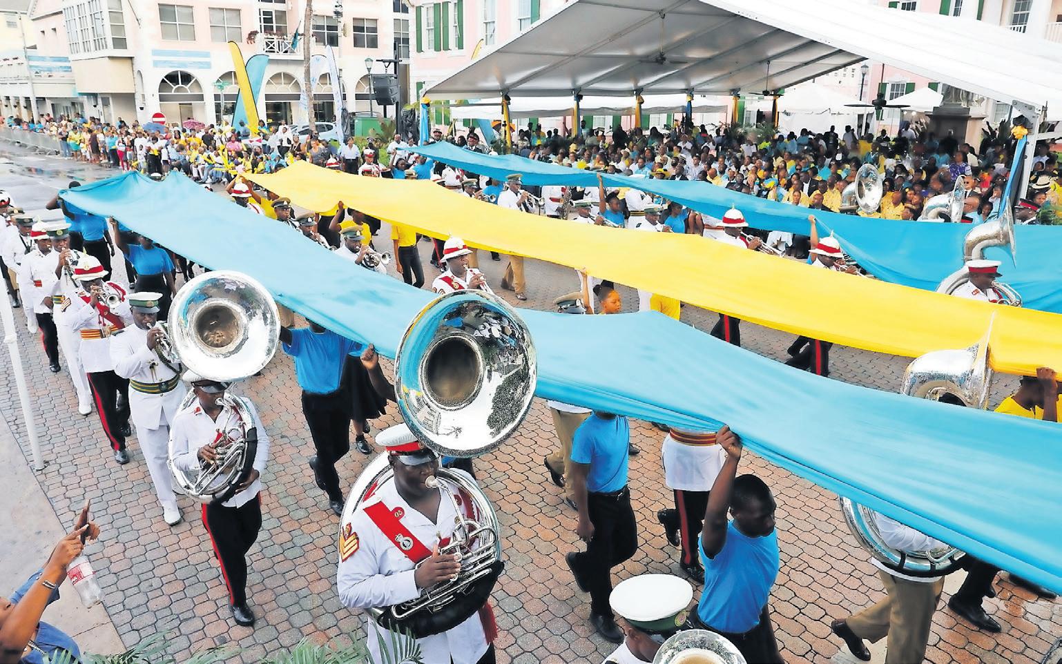 National Flag DayGovernor General Cynthia ‘Mother’ Pratt, and Indepence Secretariat Leslia Brice cheer as the flag was raised at Government House on June 28.Photos: nikia Charlton
