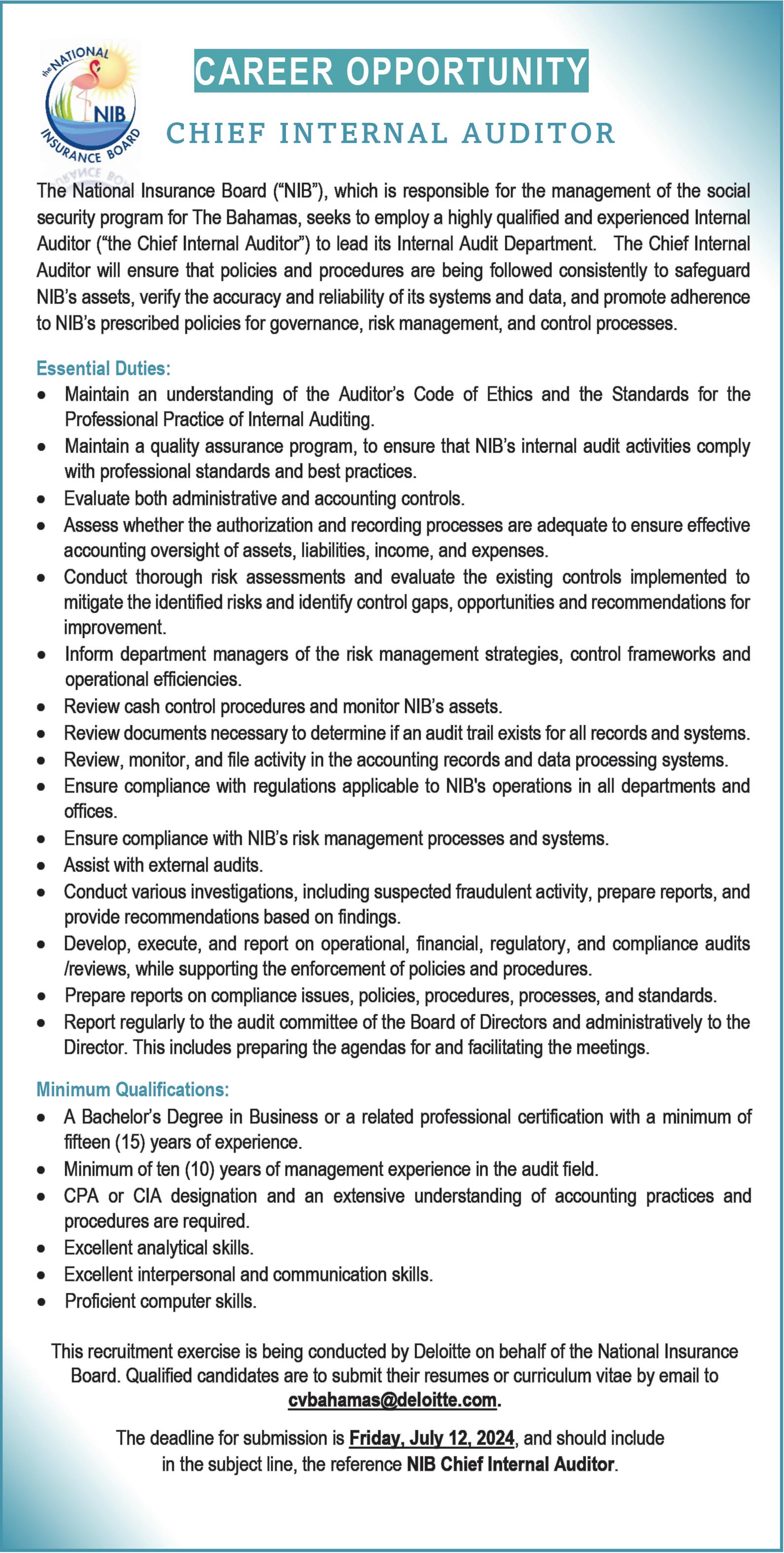 The Chamber, requesting that it gain a seat on both the Public Sector Audit Committee and Fiscal Responsibility Council to represent the private sectors interests, said: “One bold assertion was the insistence on employers to live up to obligations of ensuring adequate training and appointment of Bahamian talent with the approval of work permits for projects where the talent does not exist locally.