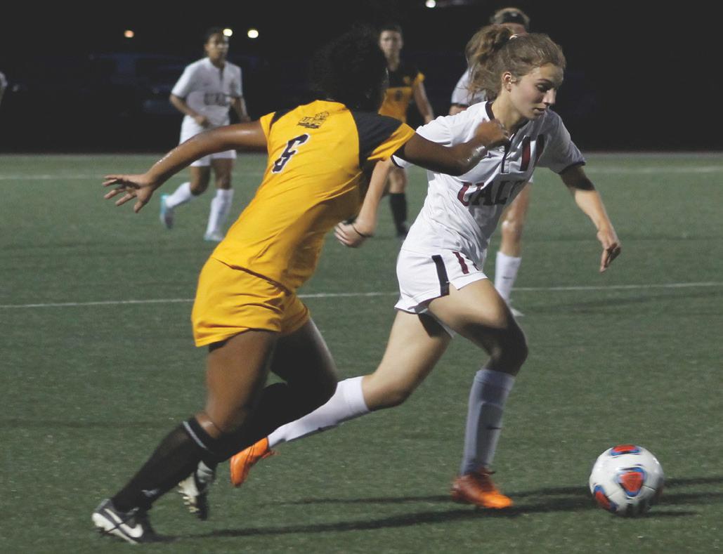 “I’m super busy all the time. [My teammates and I] try really hard to do work together as a team. We all live together, which is really nice. All of my roommates are on the soccer team,” she adds.