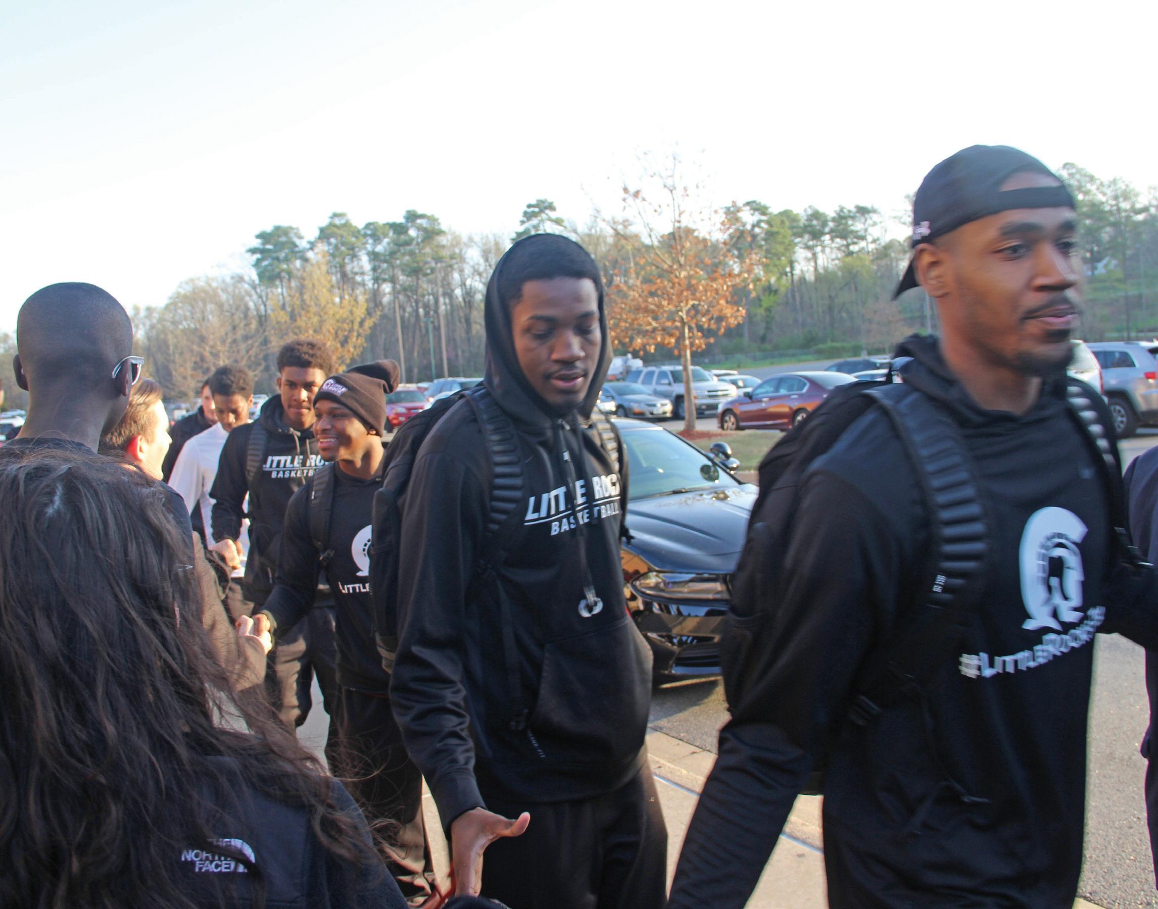 The Trojans had their first tournament game against the Louisiana Ragin’ Cajuns. Little Rock started off strong in the first half outscoring the Ragin’ Cajuns by ten. The team eventually warmed after starting 1 of 6 from the field to shoot 50% from the field and from the three-point line. Marcus Johnson, Jr., scored 11 straight points to give the Trojans the lead for good during the first half. In the second half, Louisiana began to strike back scoring 42 points and tying the game twice, which made the Trojans sweat just a little bit. But their spectacular shooting