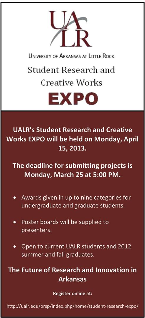 The Arkansas Small Business and Technology Development Center is scheduled to host Lab2Launch from 8 a.m. to 4 p.m. March 12 at UALR’s Reynolds Center for Business and Economic Development. The commercialization training event for university researchers and entrepreneurs will cover funding opportunities, networking, legal information and the technology transfer process.