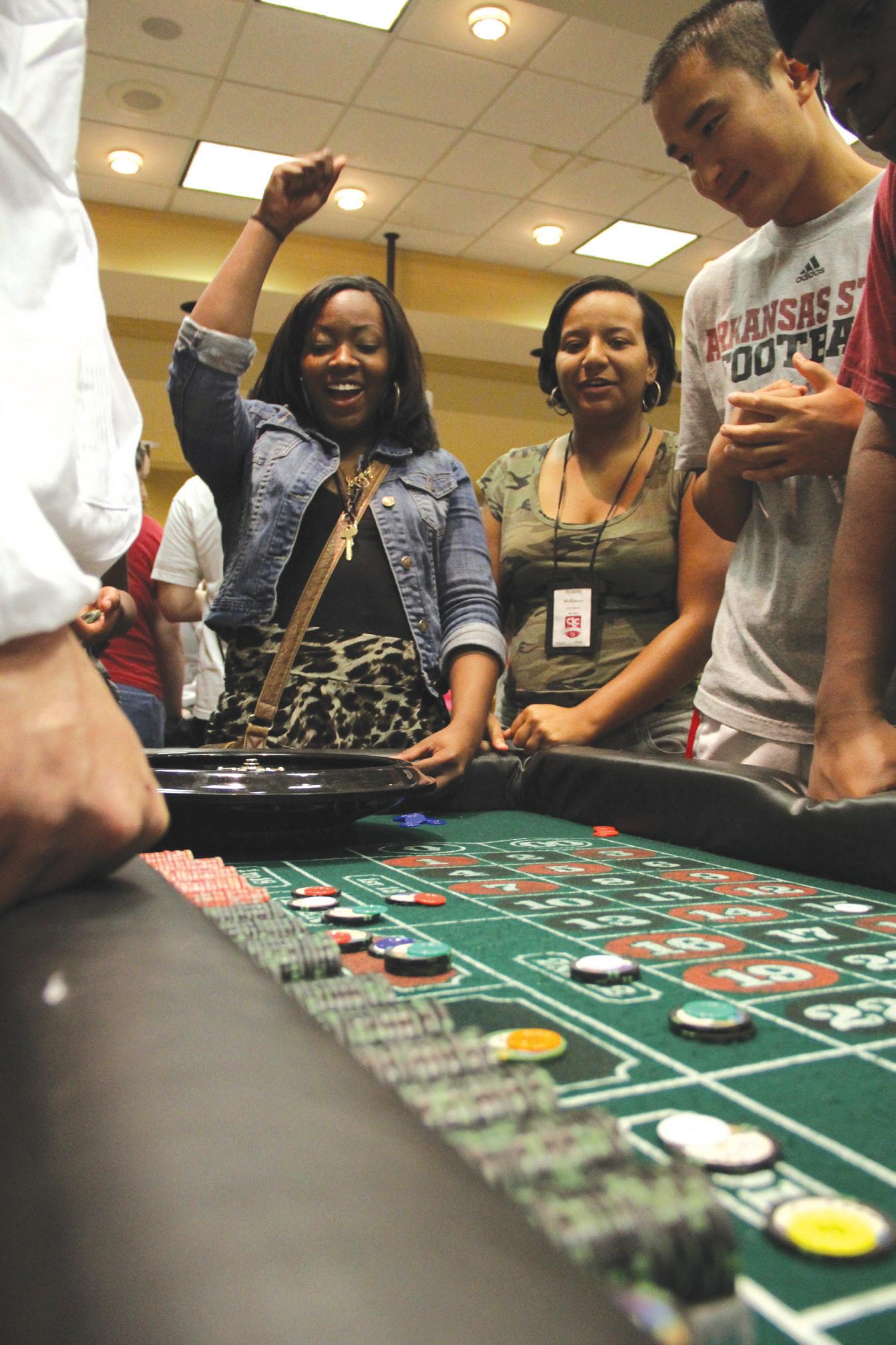 Angelica Scott, a freshman nursing major, came away a winner at the Casino Night in Ledbetter Hall on Aug. 16. Photo by Chelsey McNiel