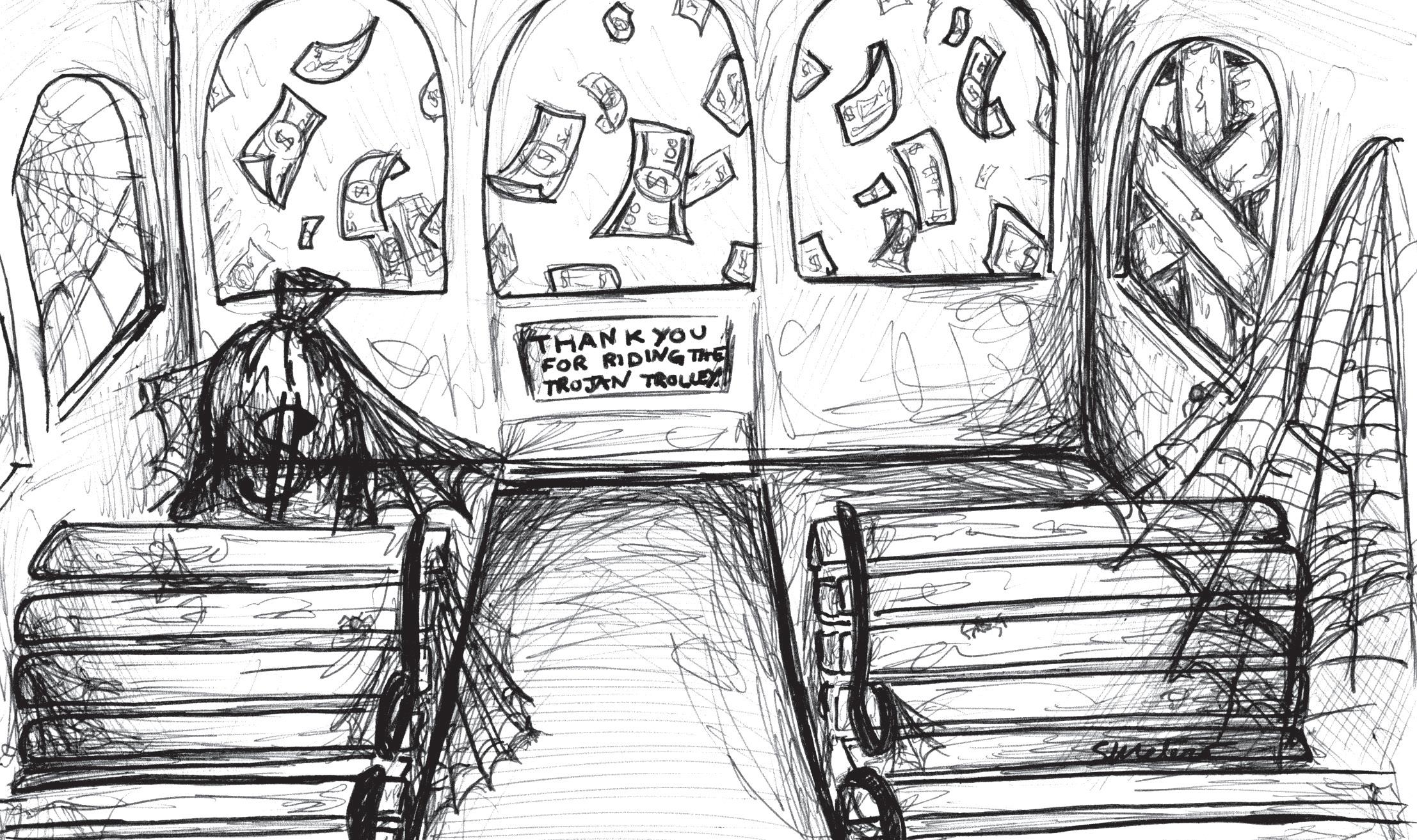 With about 13,000 fee-paying students, the cost averages to about $23 per student each year, not including the cost of fuel. But considering the ever-present empty seats on the trolleys the cost is astounding.