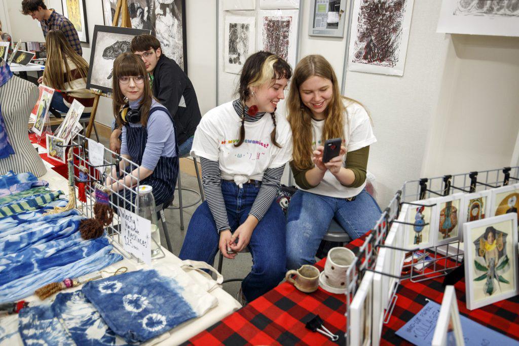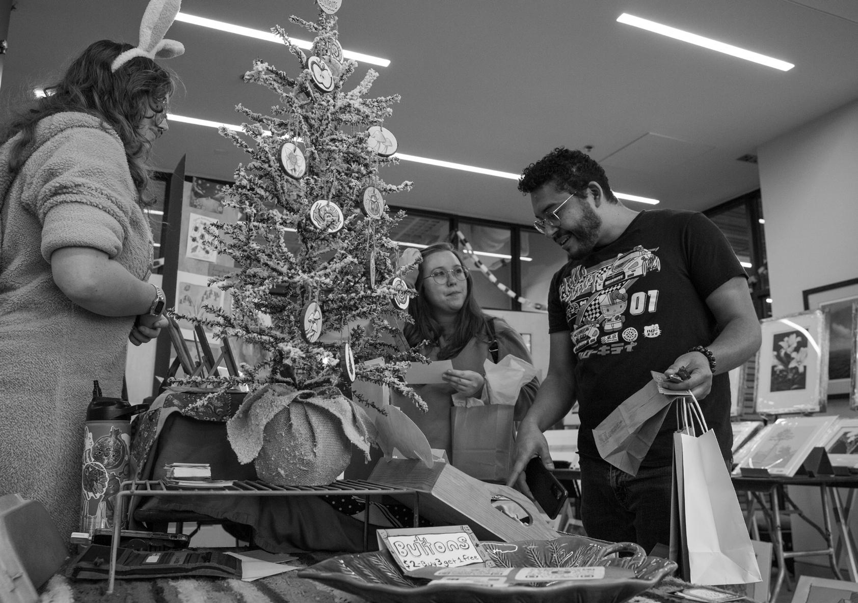 sold, whether they’re 3D or 2D, realistic or stylized, stickers or full canvases or even tissue boxes made to look like cakes. There is a warm cup of cocoa in your hand and a pleasant atmosphere fills the space. This November, the School of Art and Design hosted its annual Holiday Art Sale, a major success and an amazing opportunity for artists!