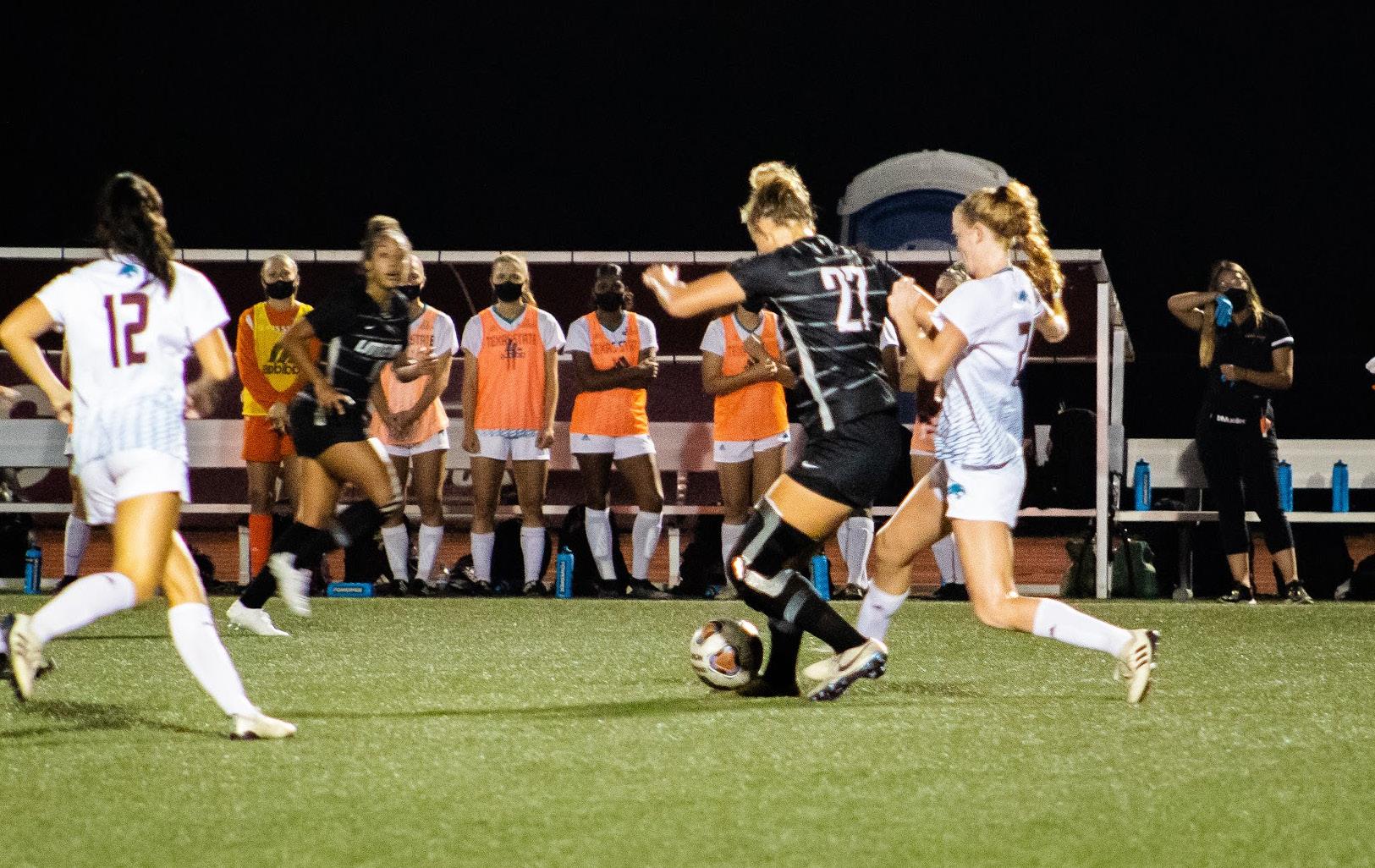 The Trojans missed a couple of opportunities during the first five minutes of the game, one aiming too high and the other blocked by UCA goalkeeper, Reagan McCombs.
