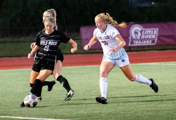 LITTLE ROCK – The LR Trojans are coming in with a grand slam this season. For the first time in program history, they defeated the Texas State Bobcats with a 2-0 home opener with goals from seniors Morgan Smocavich and Doro Greulich.